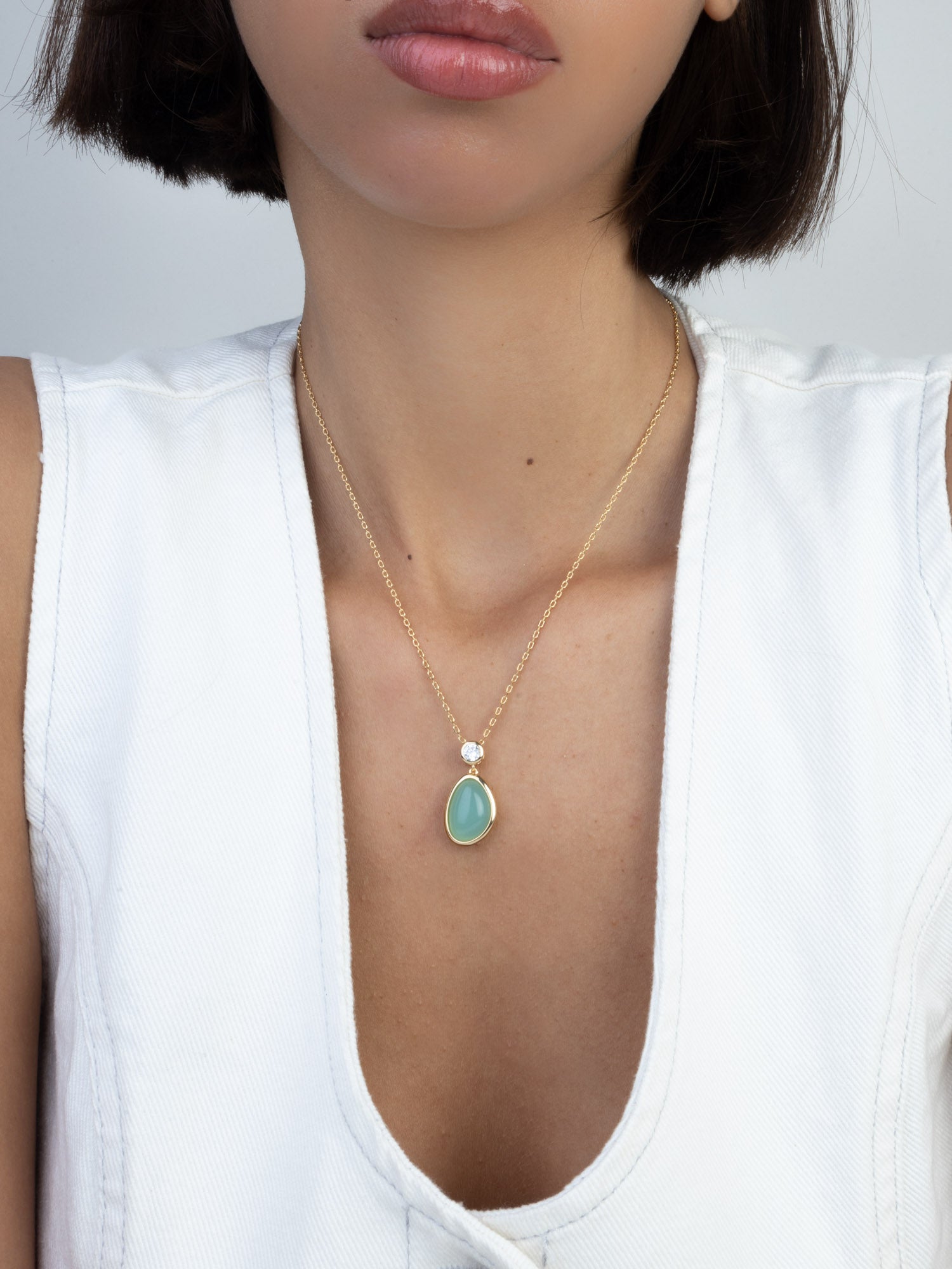 Collar colgante, Bañado en oro, Zirconia cúbica artificial, Calcedonia artificial