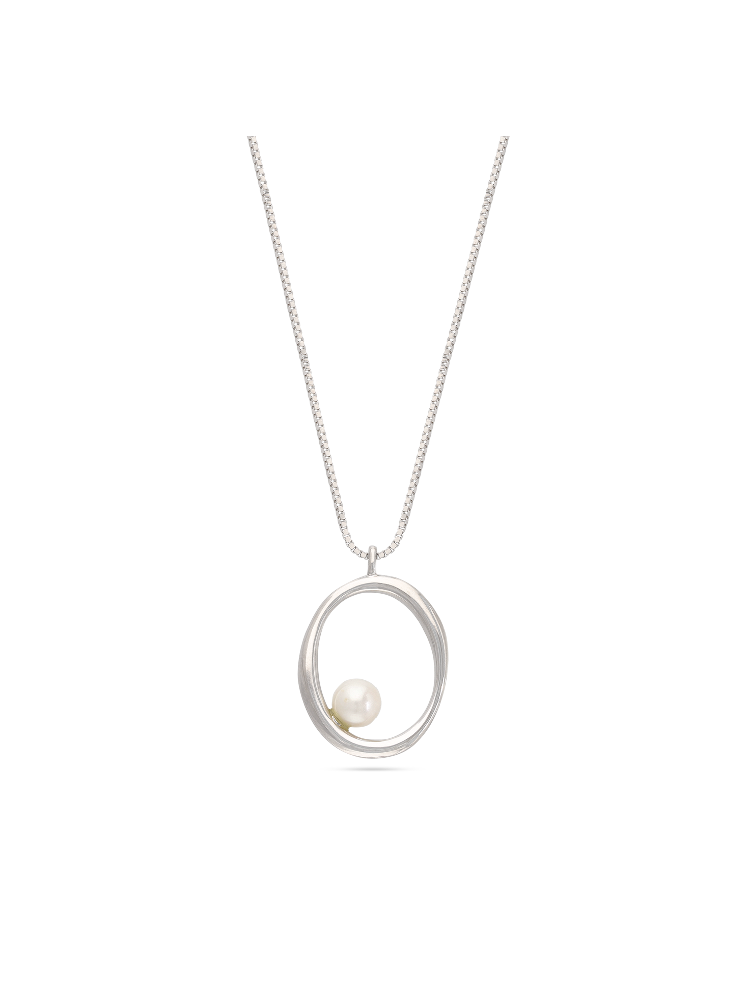Collar colgante, Plata 925 bañada en rodio, Madreperla artificial