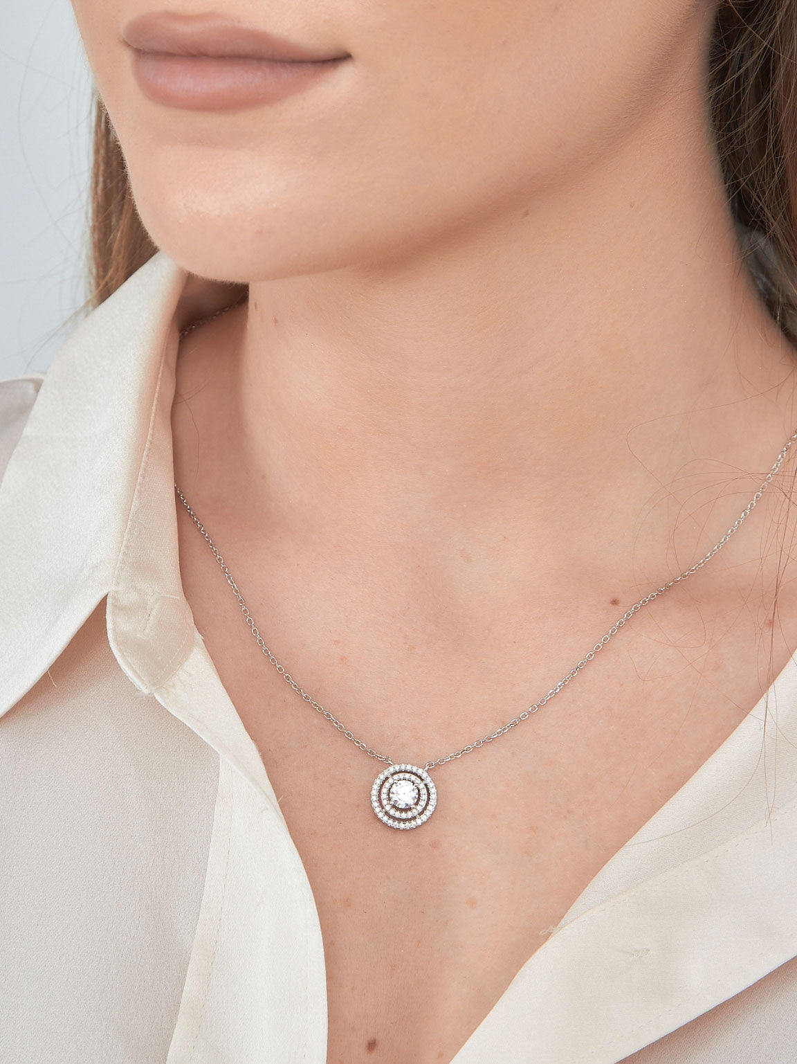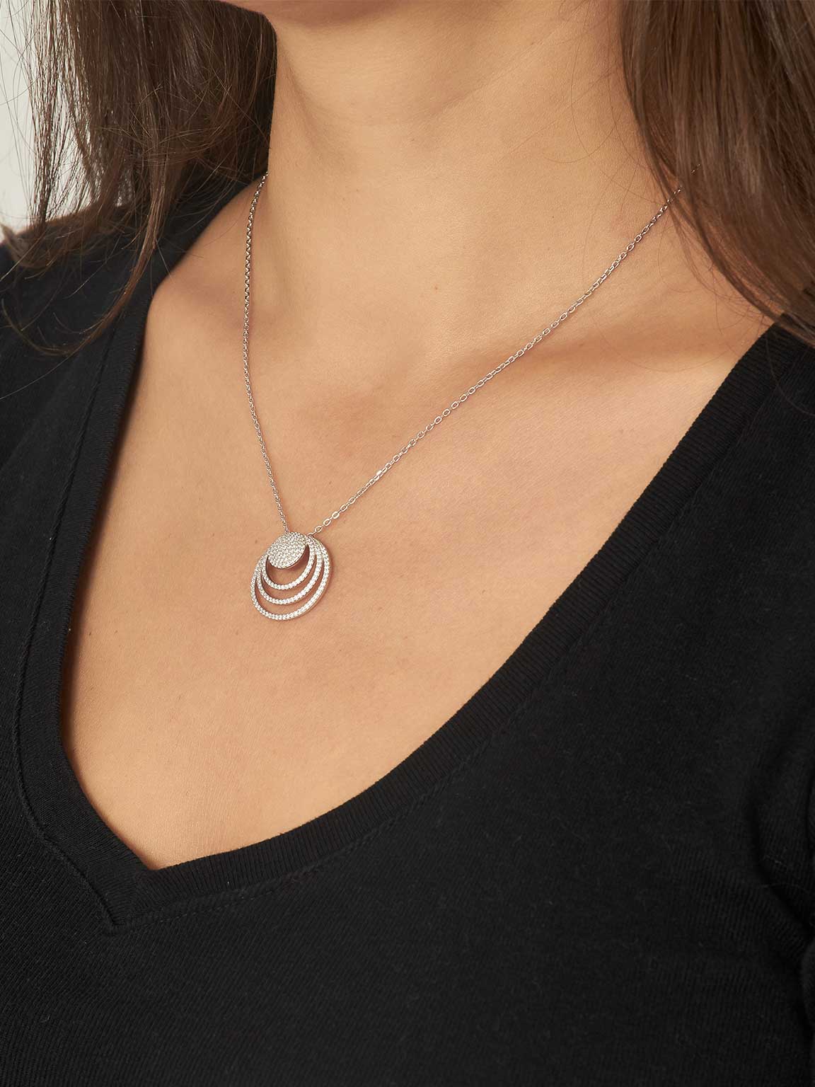 Collar colgante, Plata 925 bañada en rodio, Zirconia cúbica artificial