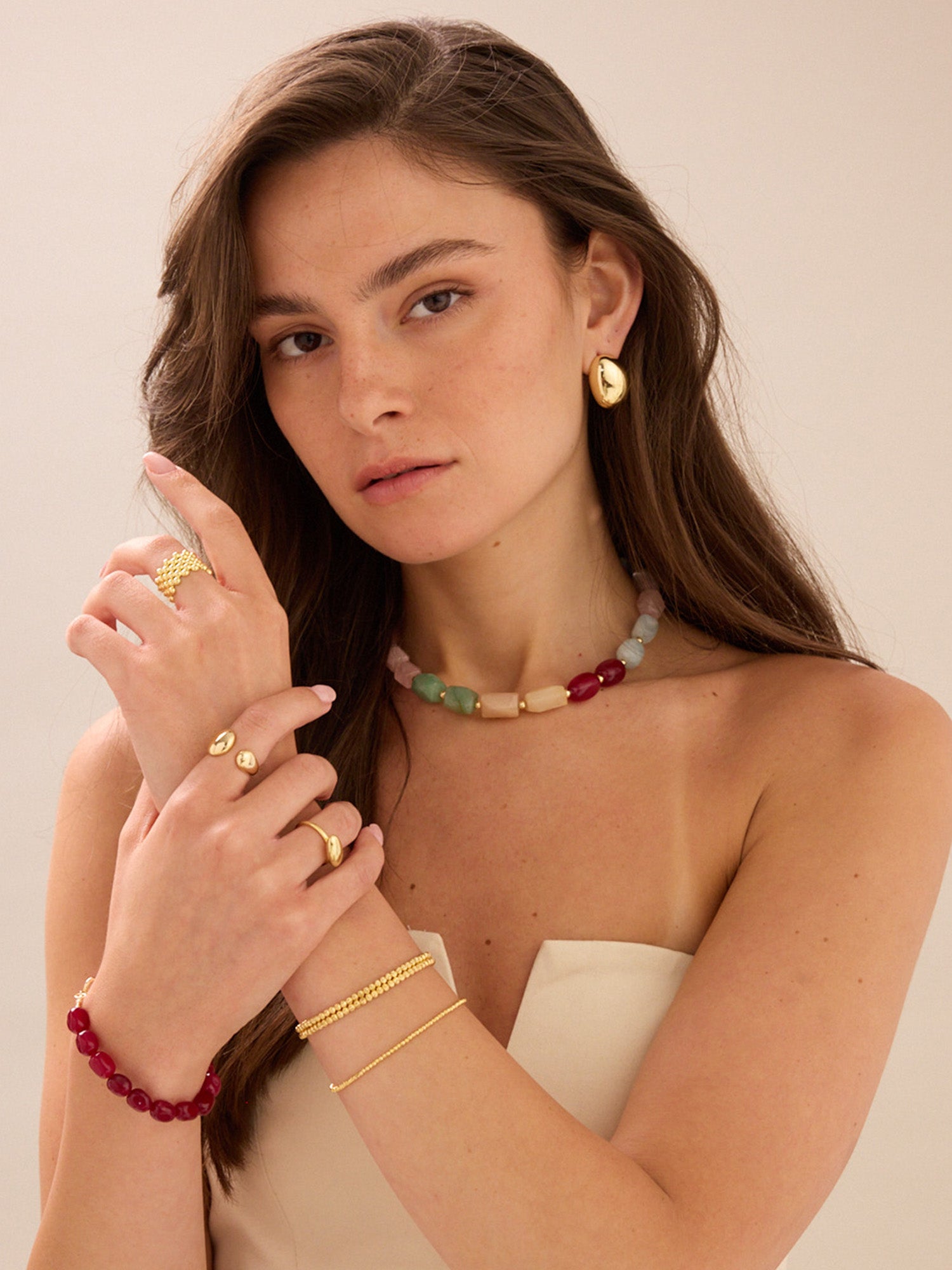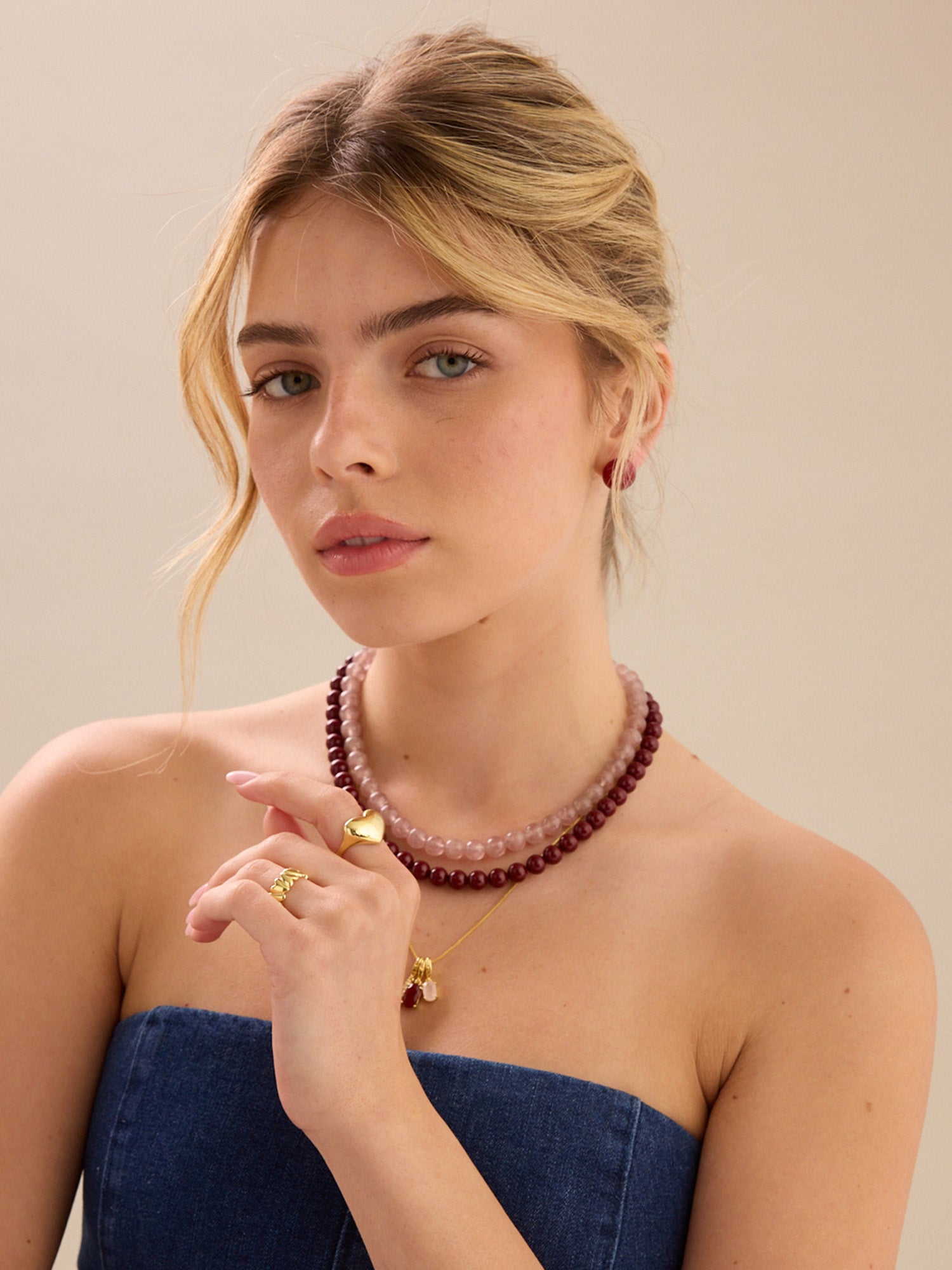Anillo Delicado, Bañado en oro, Cuarzo rosa artificial