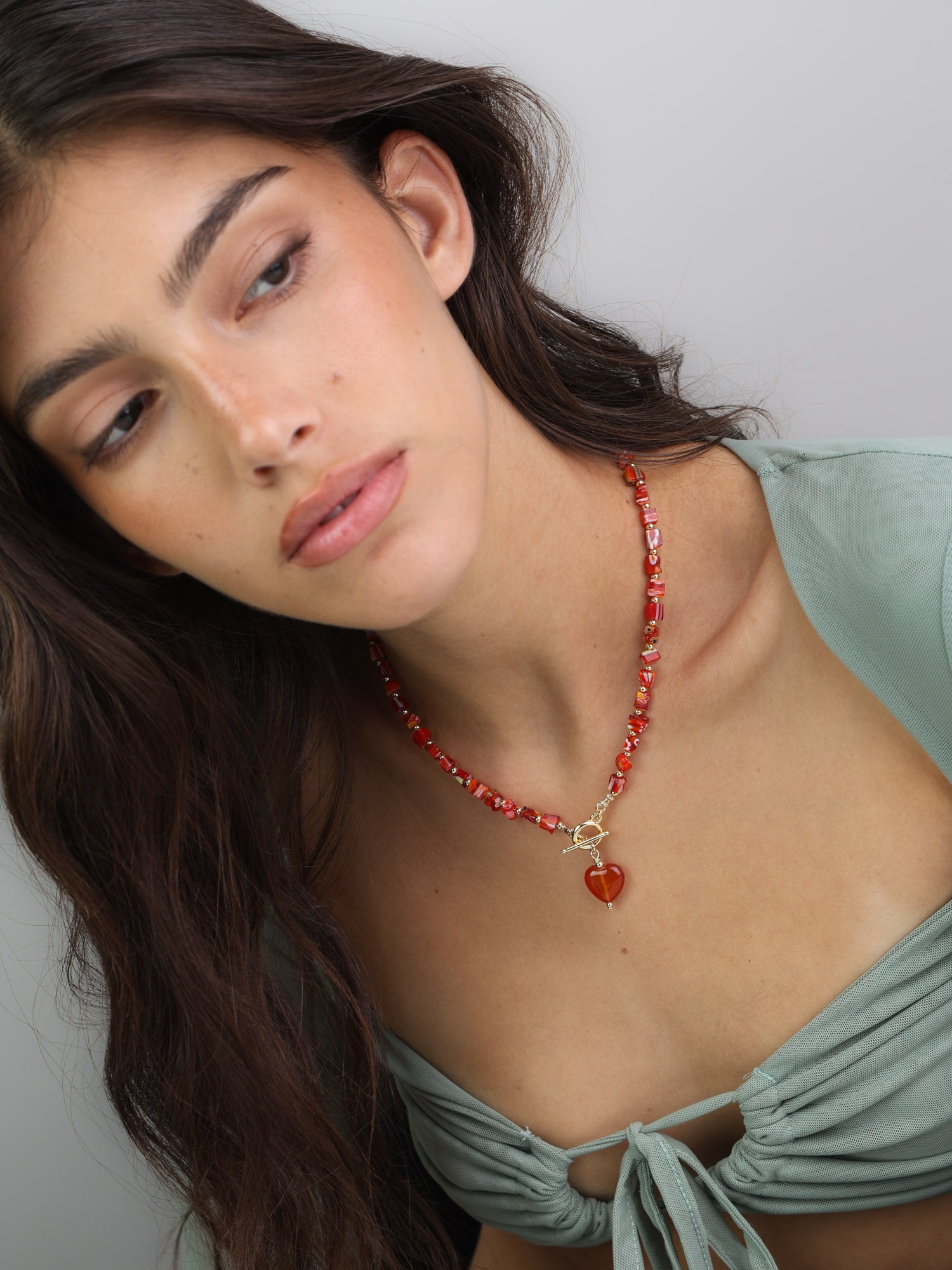 Collar Delicado y Festivo, Bañado en oro, Rubí artificial