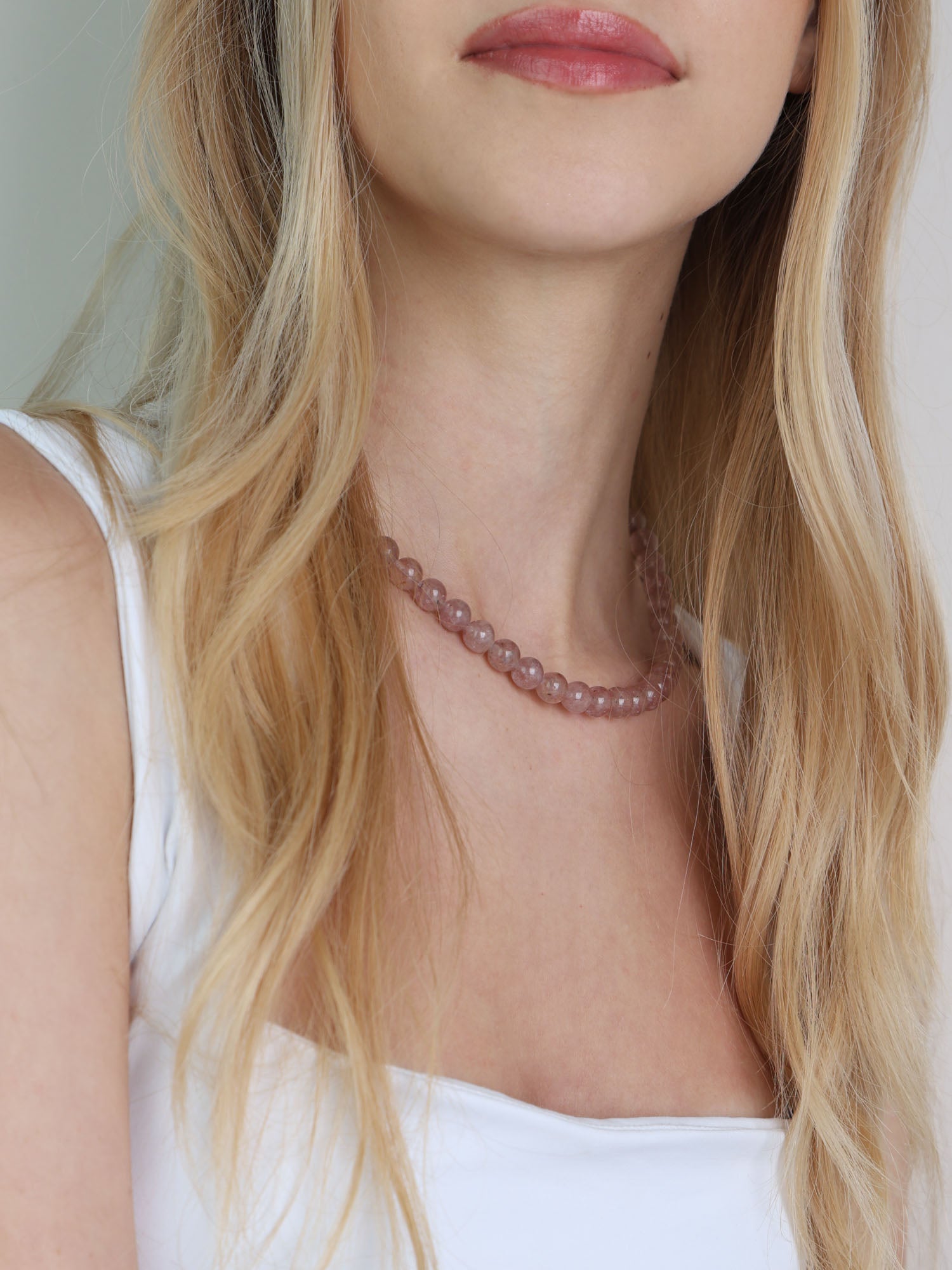 collar de perlas, Bañado en oro, Cuarzo rosa artificial, Perla cultivada