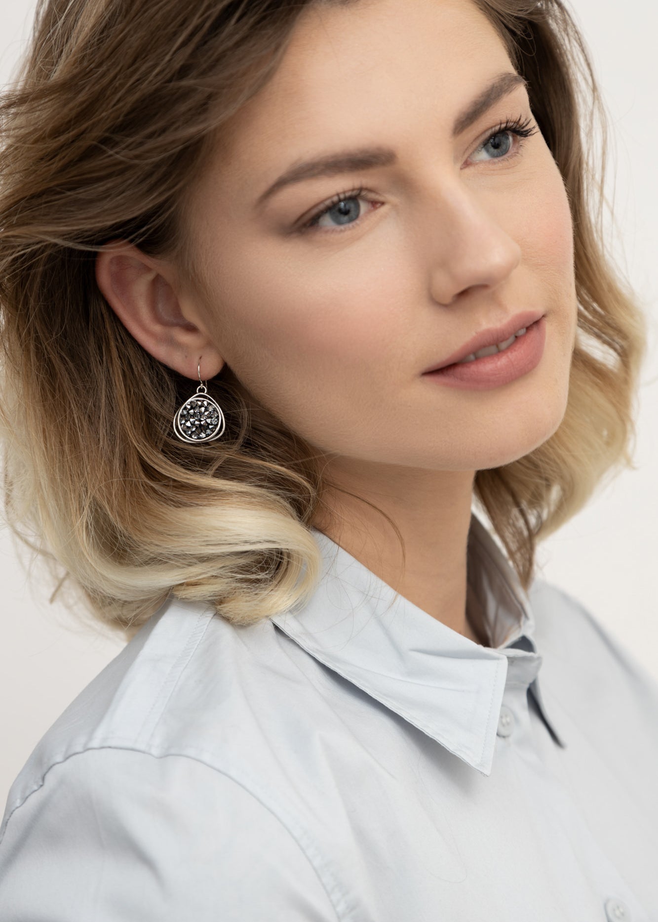 Gotas, Plata 925 bañada en rodio, Zirconia cúbica artificial, Calcedonia artificial