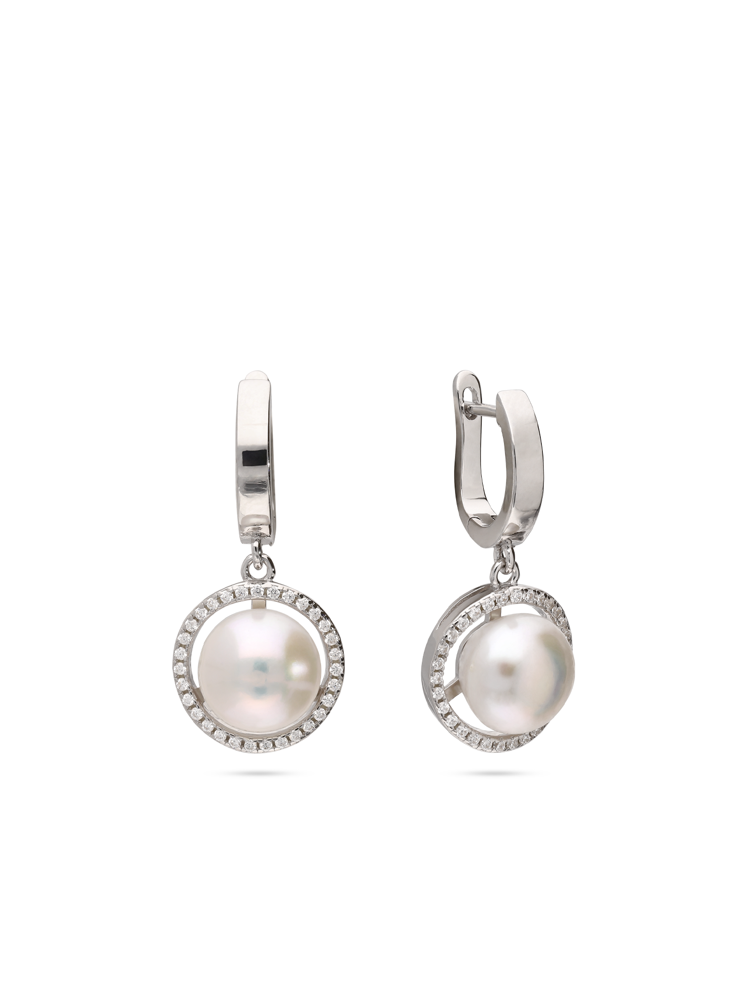 Gotas, Plata 925 bañada en rodio, Zirconia cúbica artificial, Perla cultivada