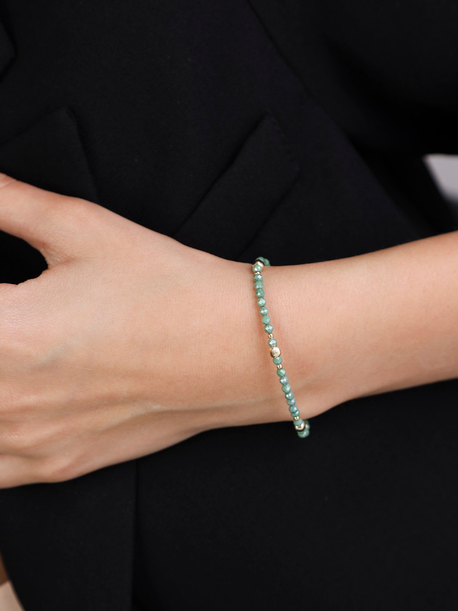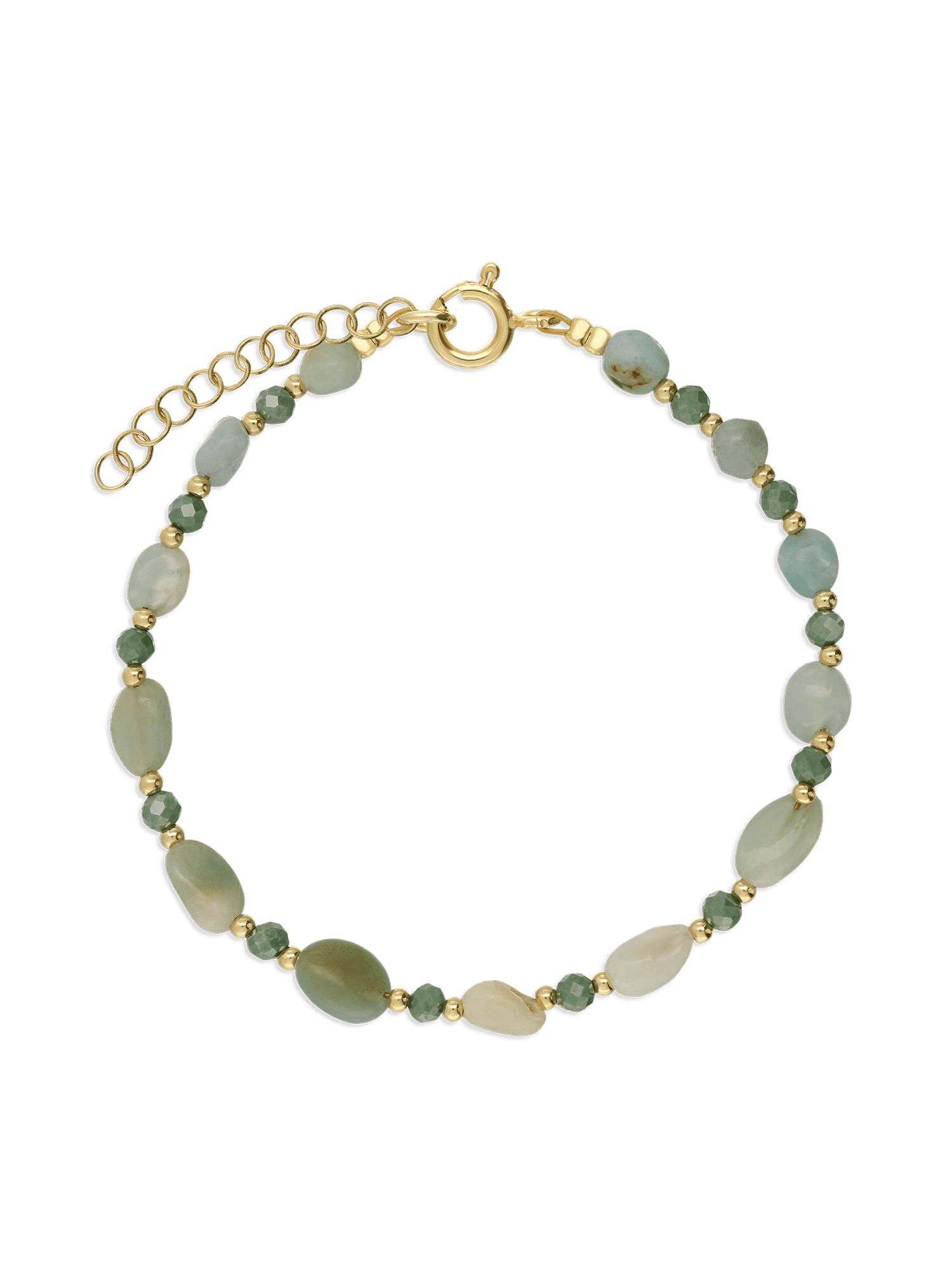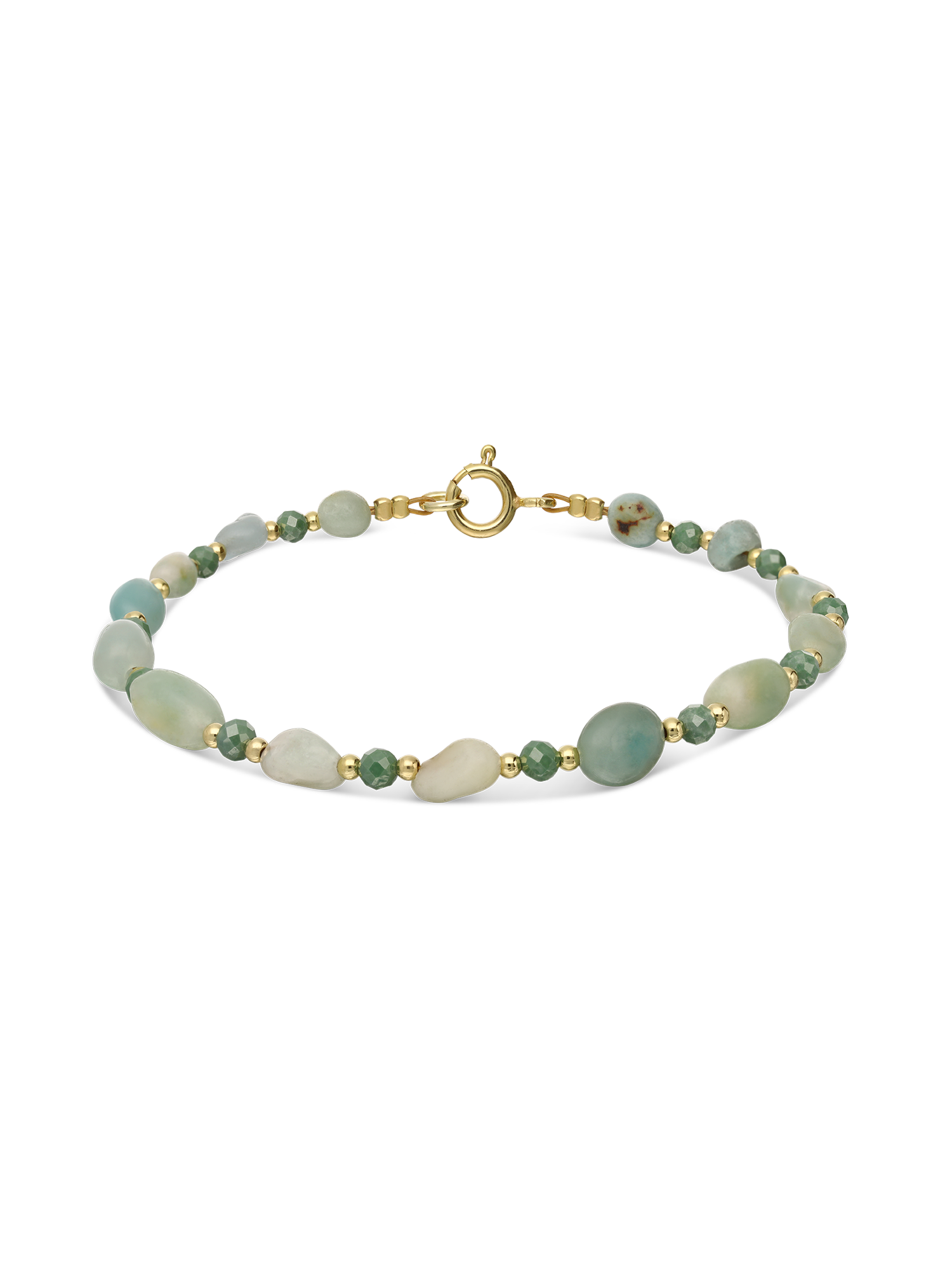 Pulsera de piedra, Bañado en oro, Zirconia cúbica artificial, Amazonita artificial