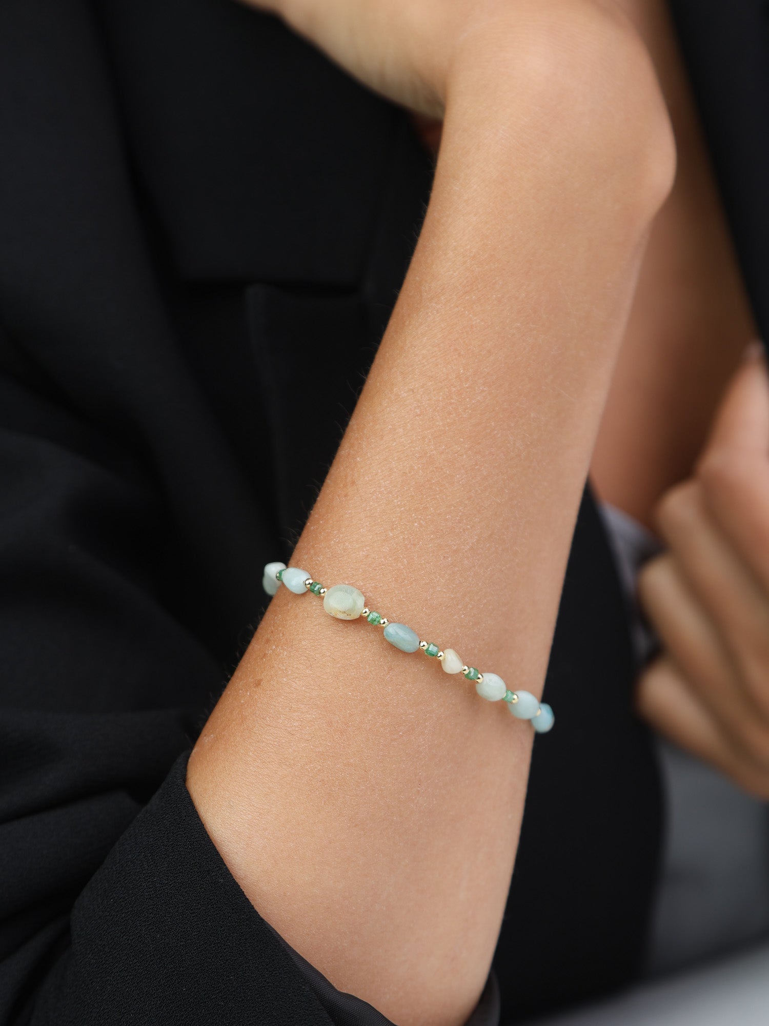 Pulseras delicadas, Bañado en oro, Perla cultivada, Amazonita artificial