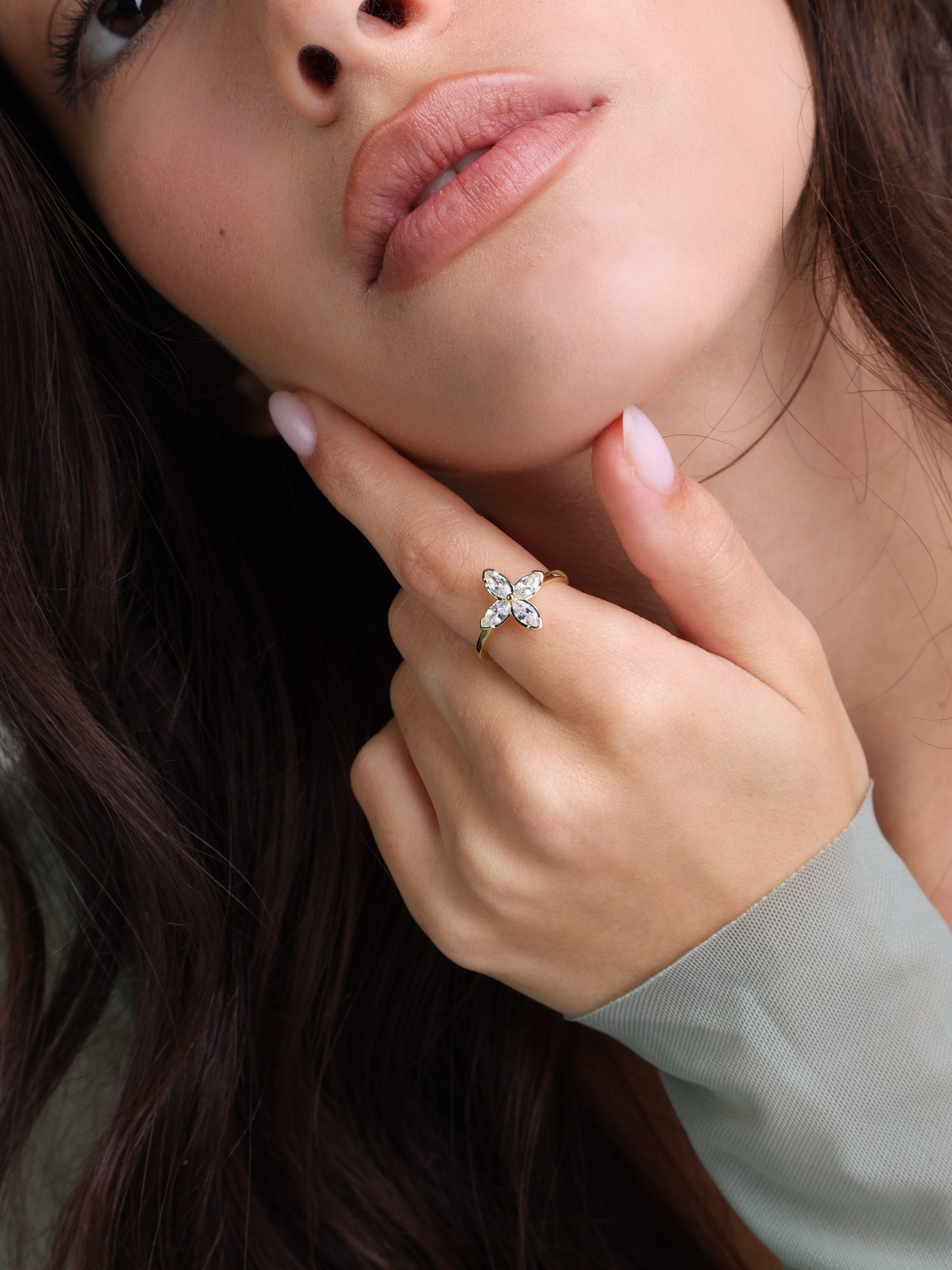 Anillo Delicado, Bañado en oro, Zirconia cúbica artificial