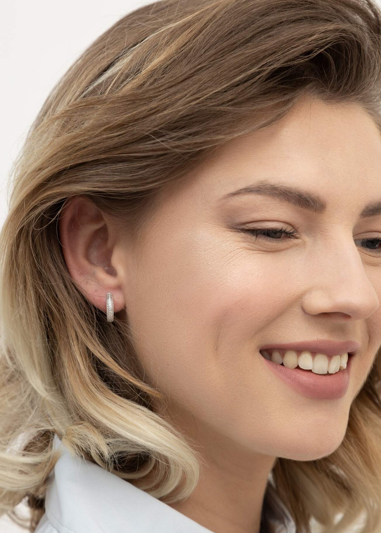 Aros, Plata 925 bañada en rodio, Zirconia cúbica artificial