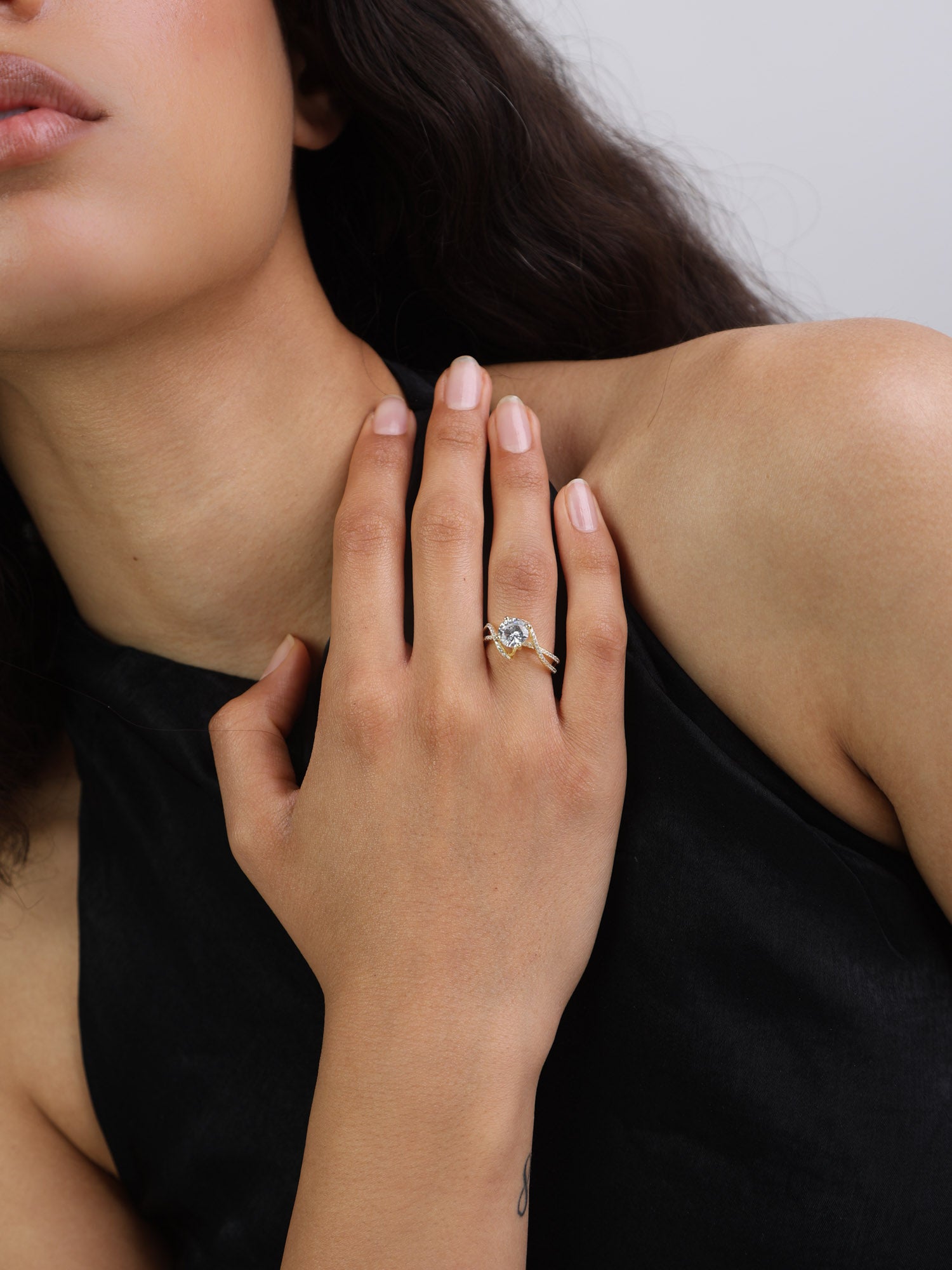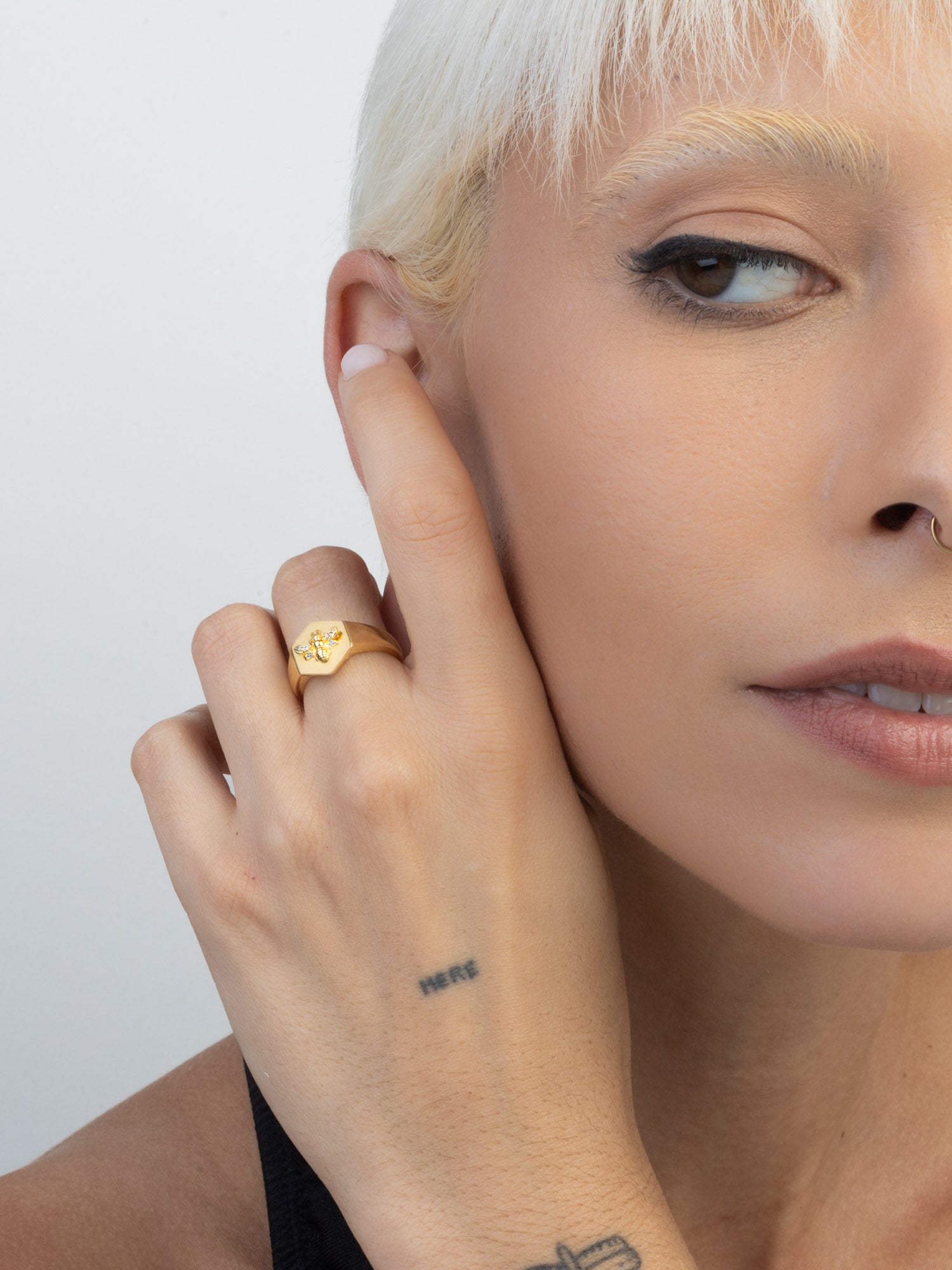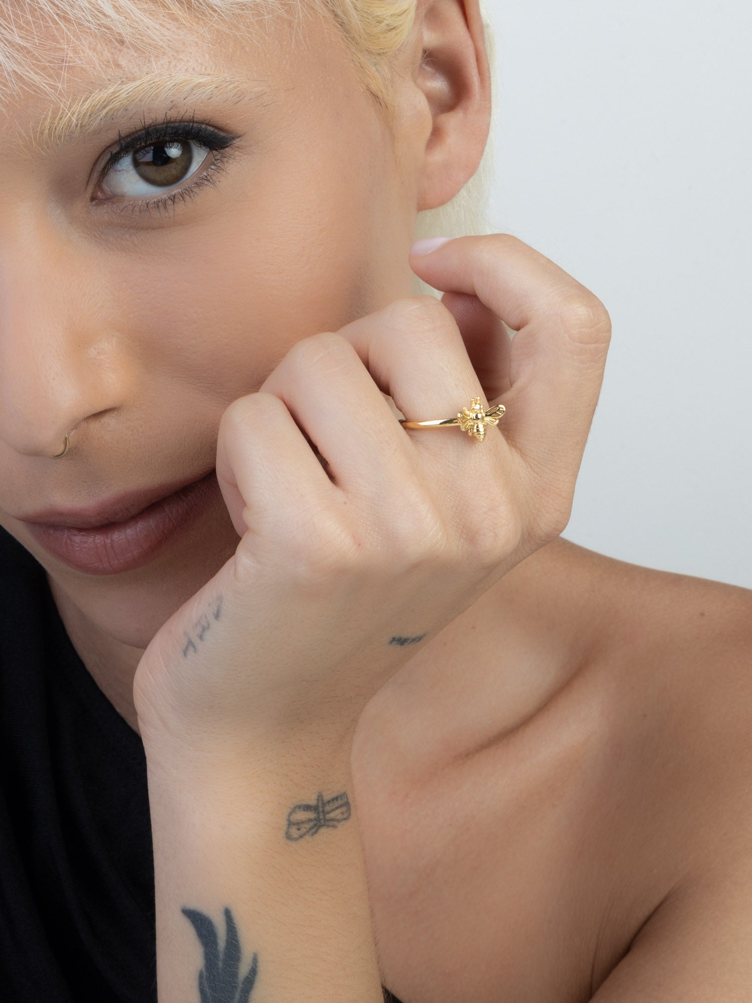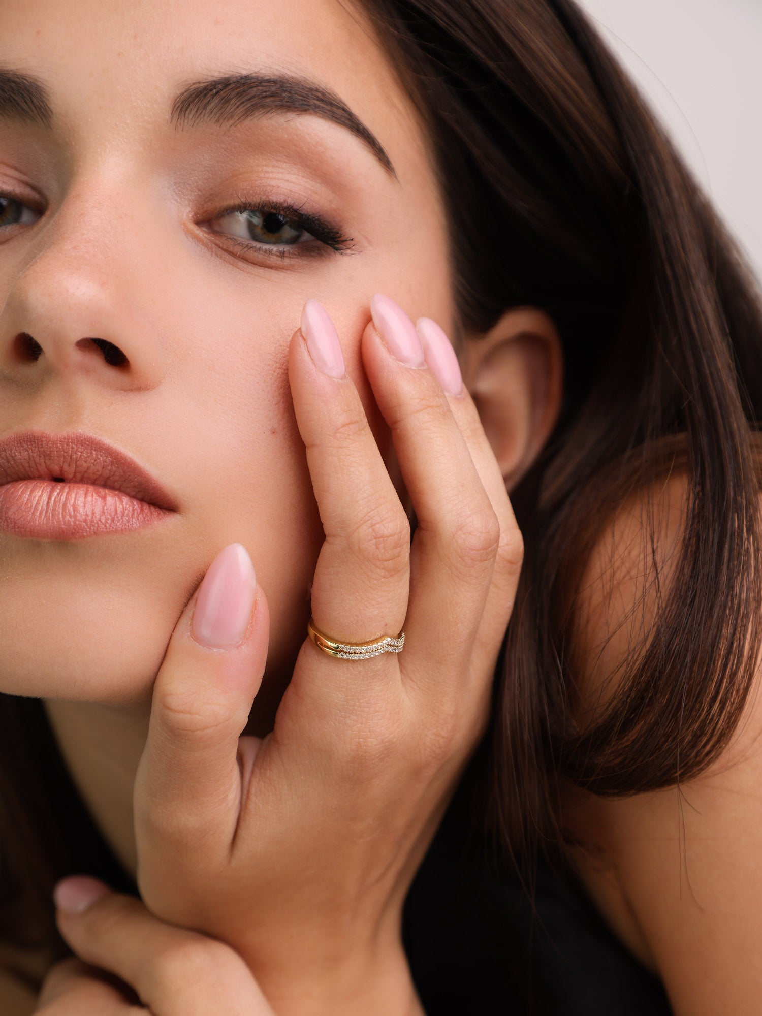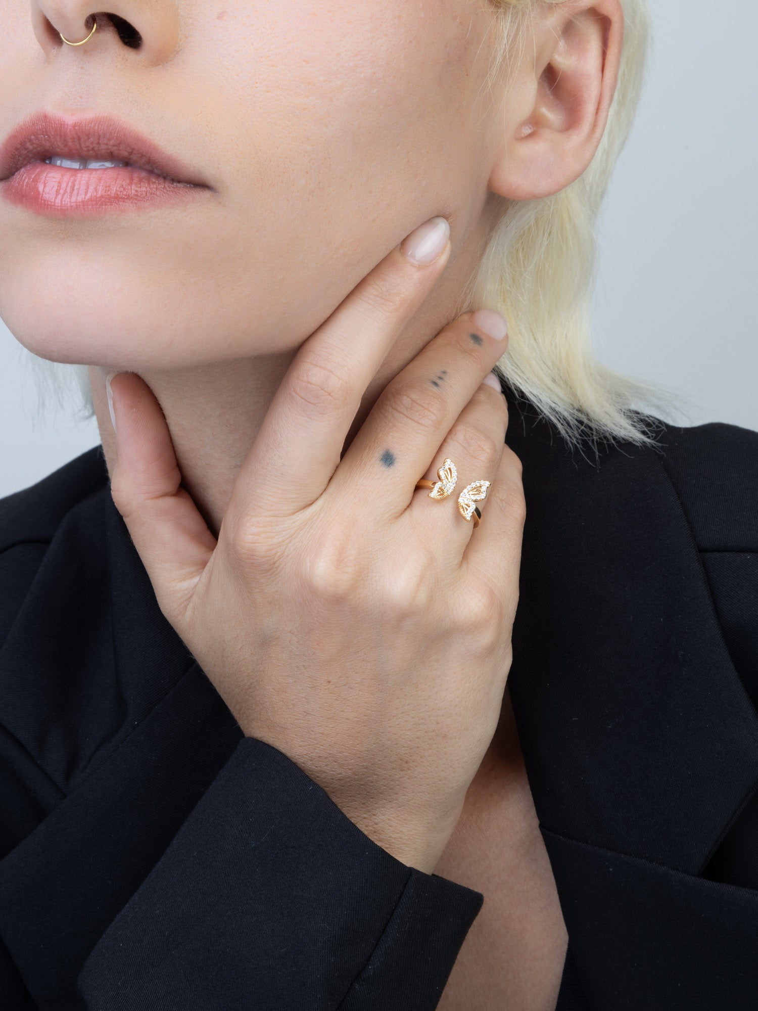 Anillo Delicado, Bañado en oro, Zirconia cúbica artificial