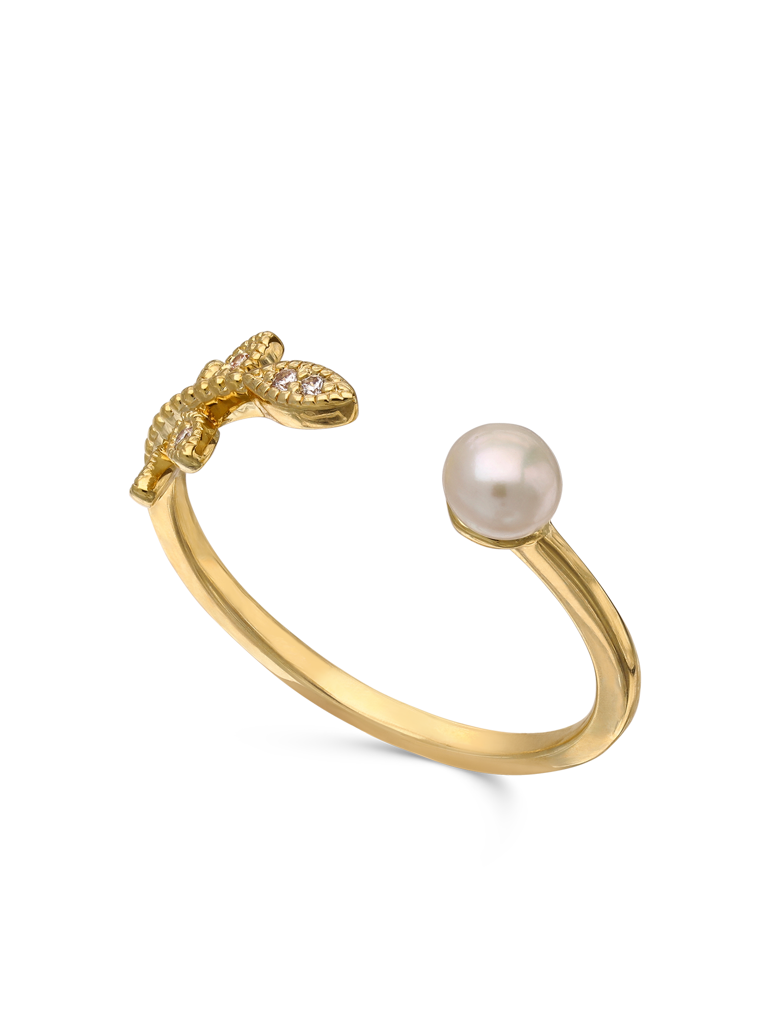 Anillo Delicado, Bañado en oro, Zirconia cúbica artificial, Perla cultivada