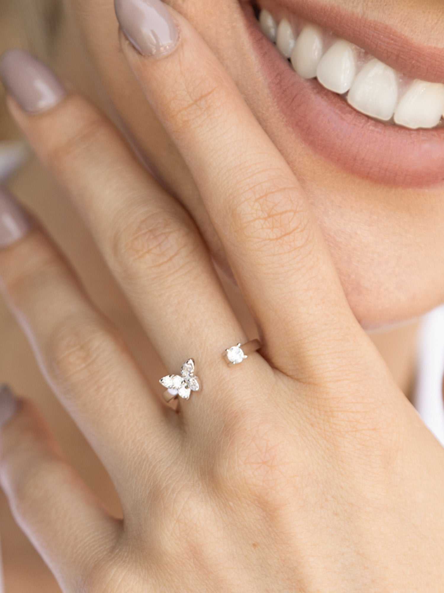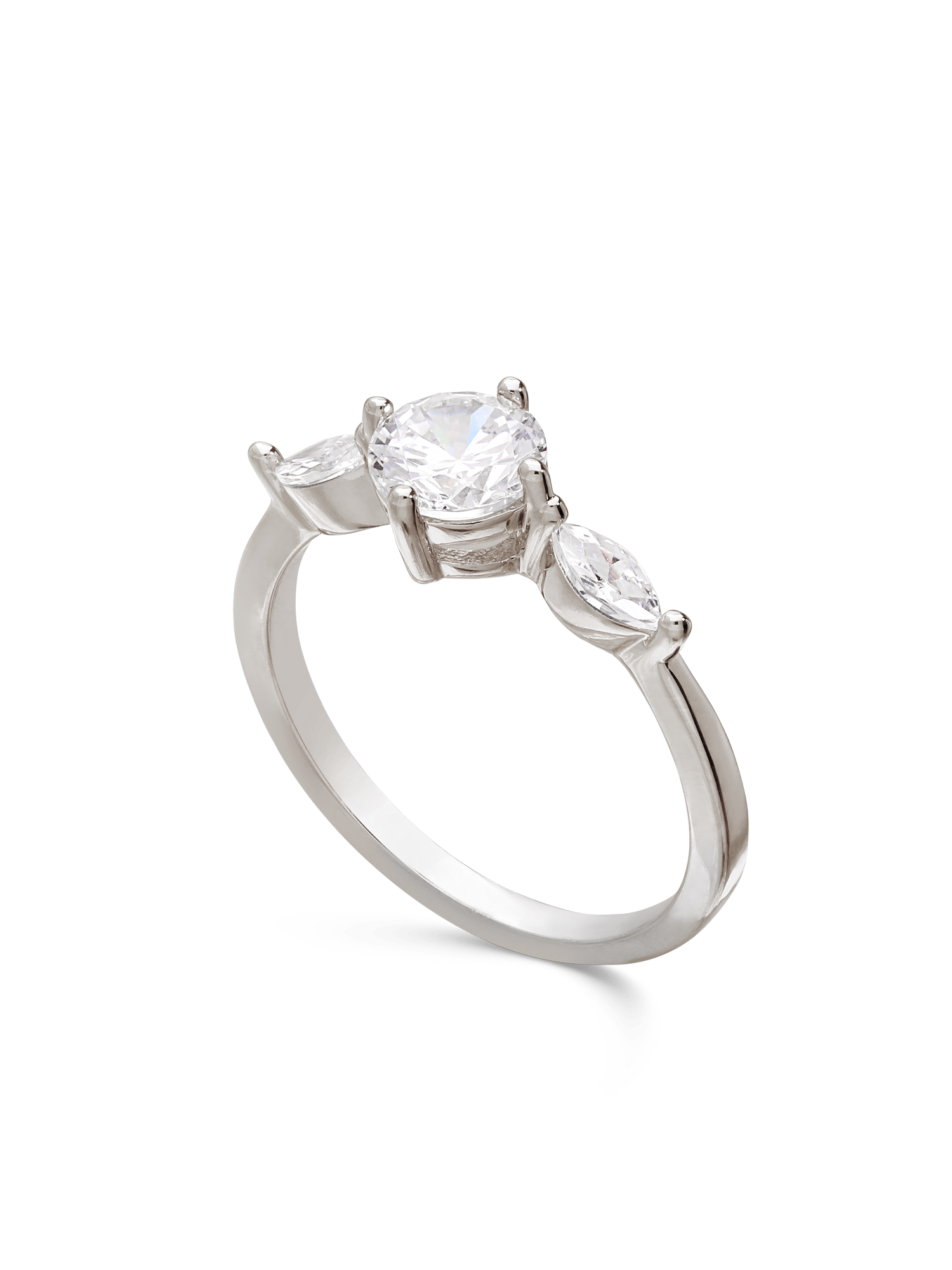 Anillo Delicado, Plata 925 bañada en rodio, Zirconia cúbica artificial