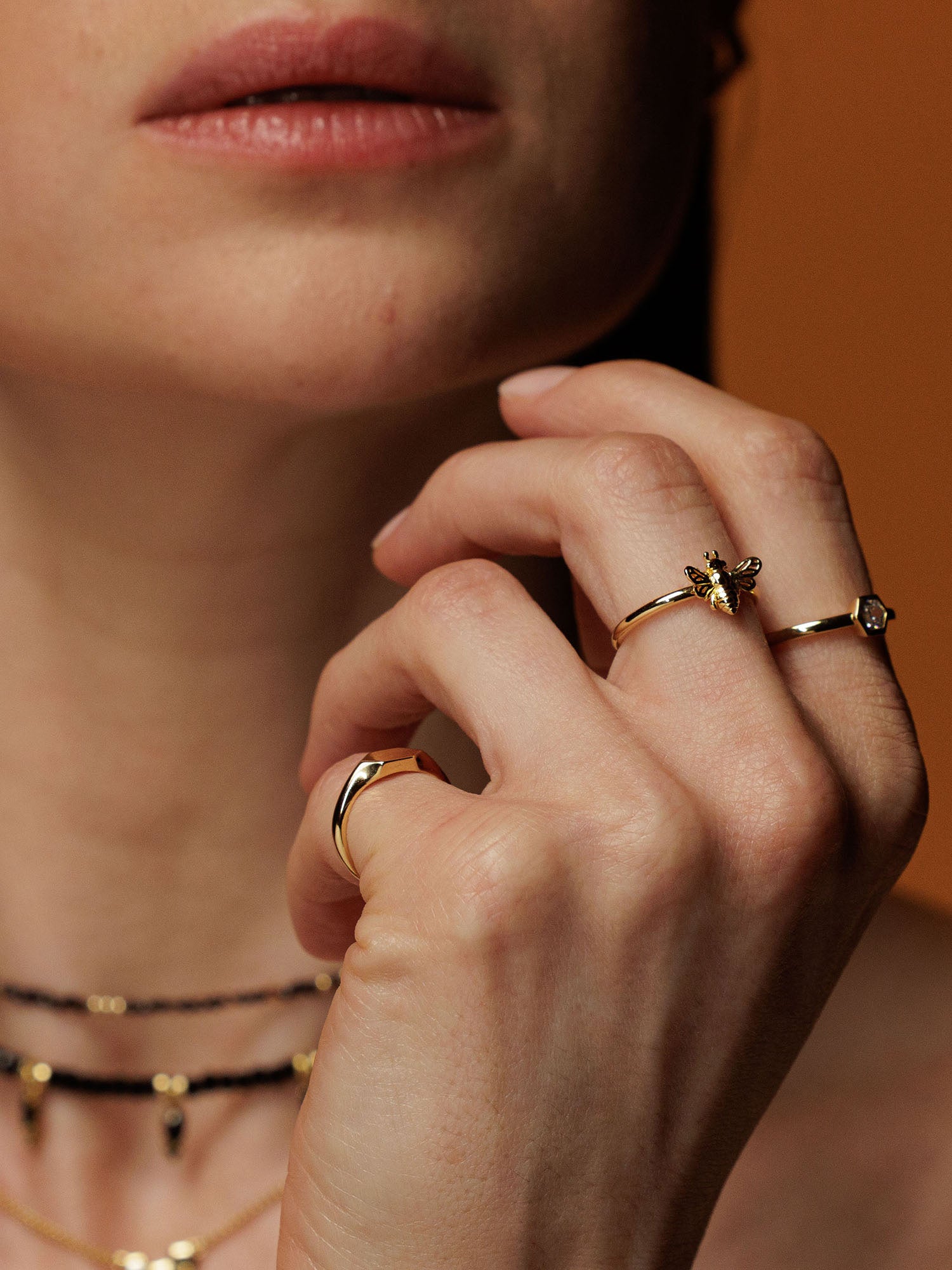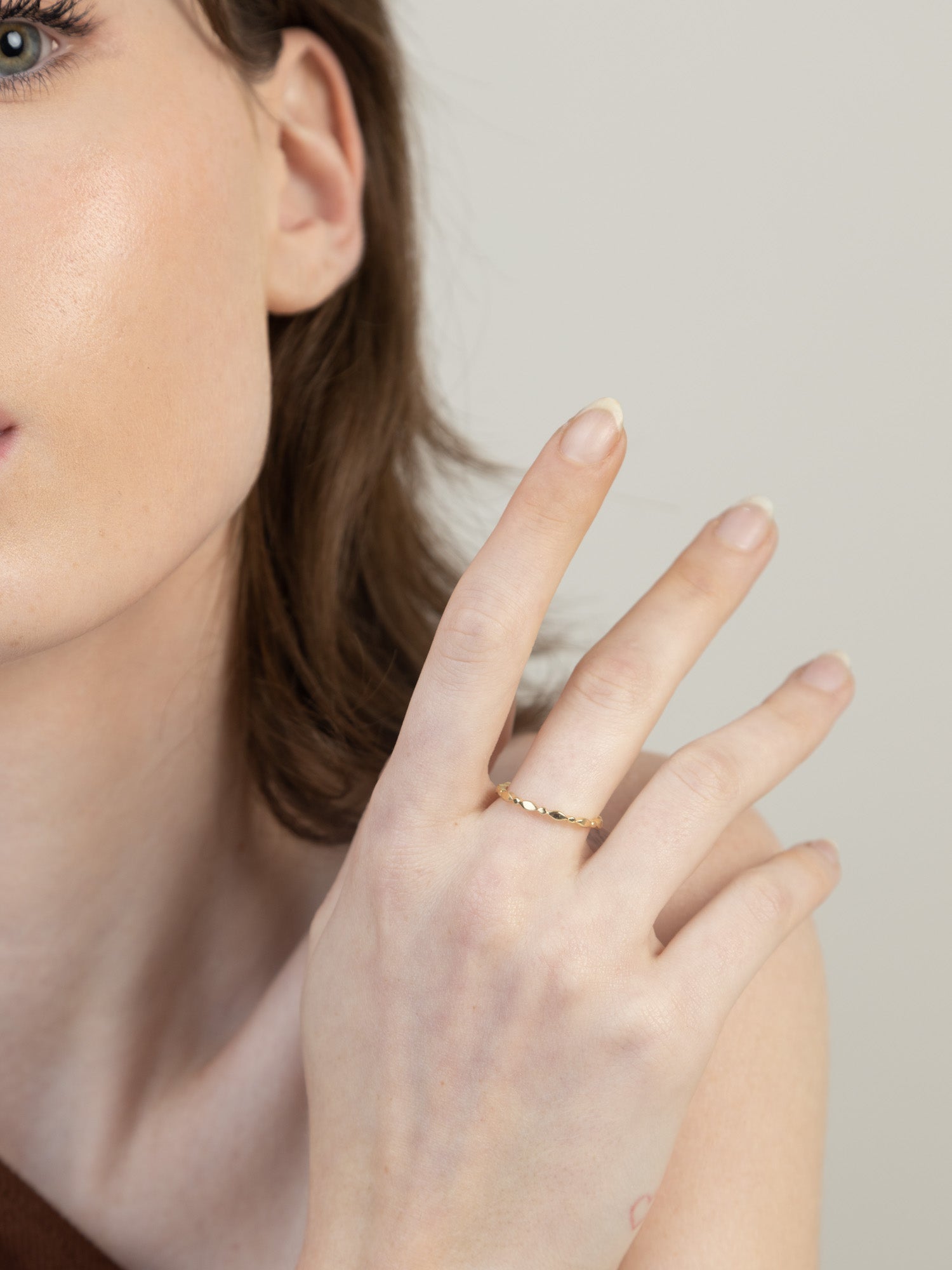 Anillo Delicado, Bañado en oro, Vidrio de plomo