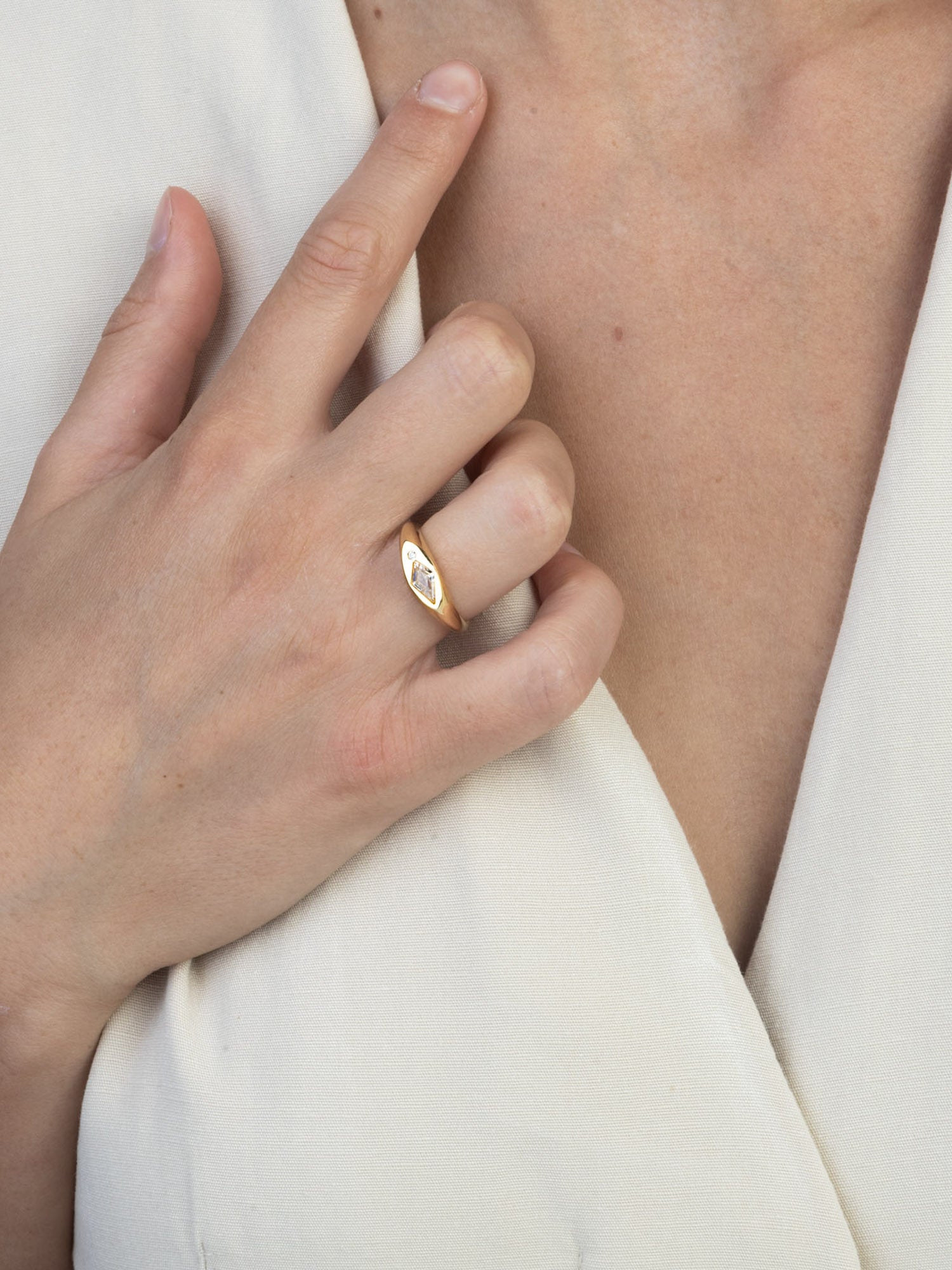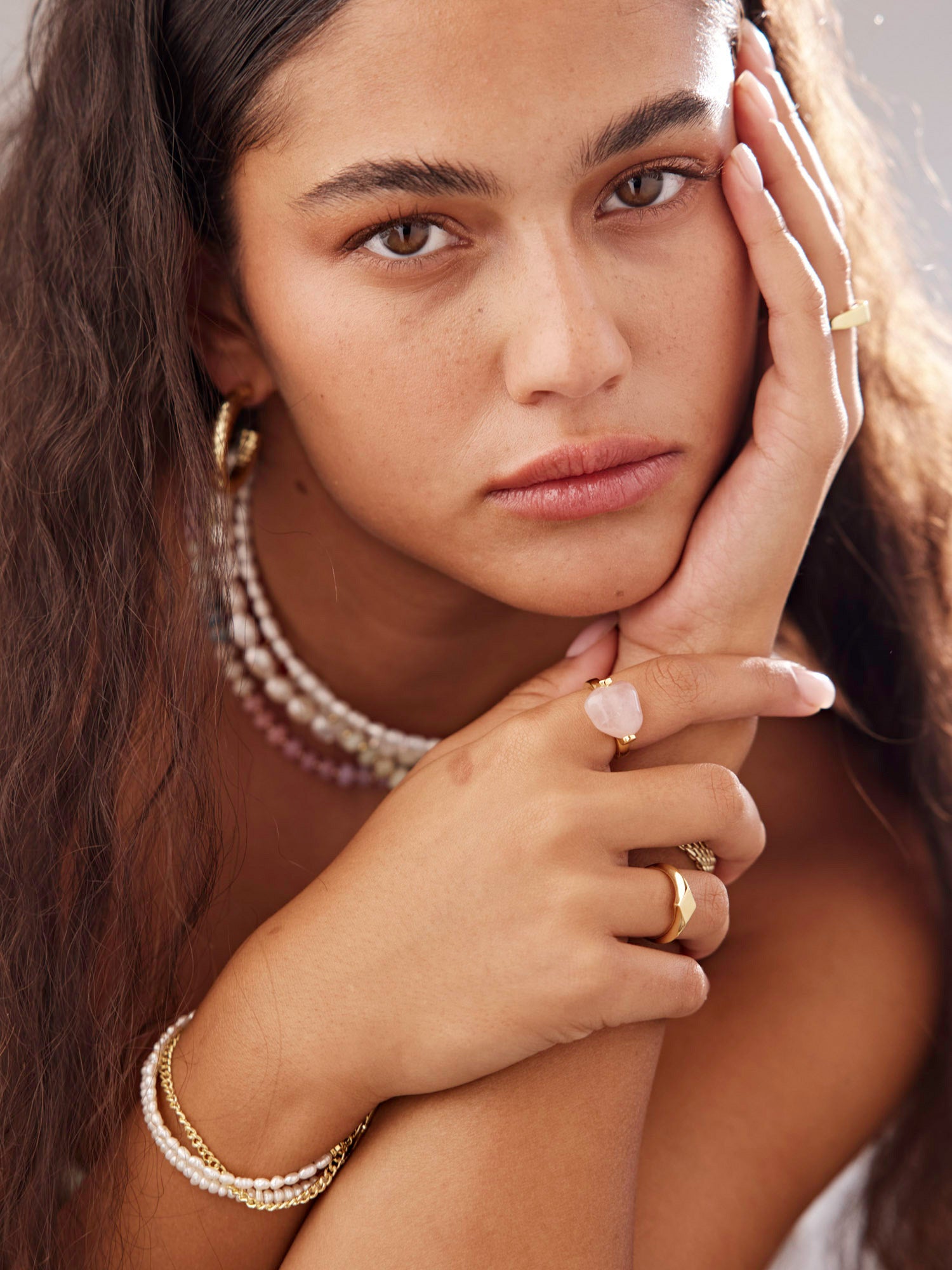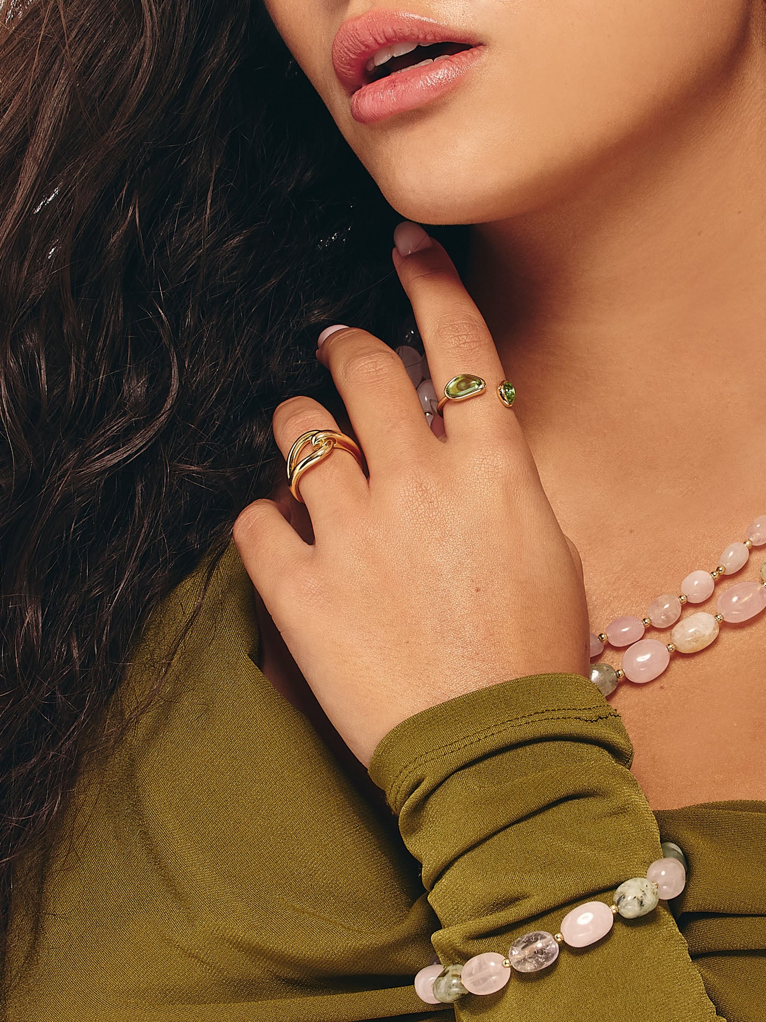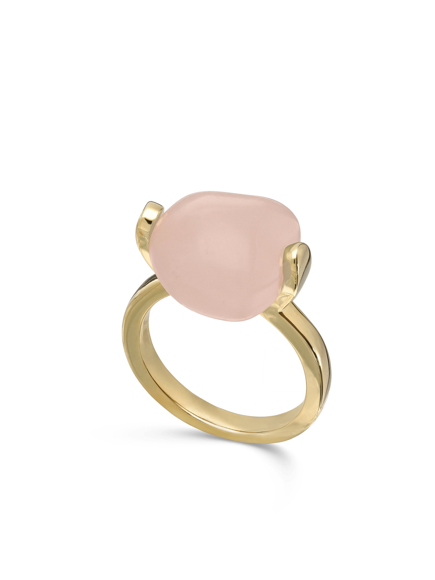 Anillo Delicado, Bañado en oro, Cuarzo rosa artificial