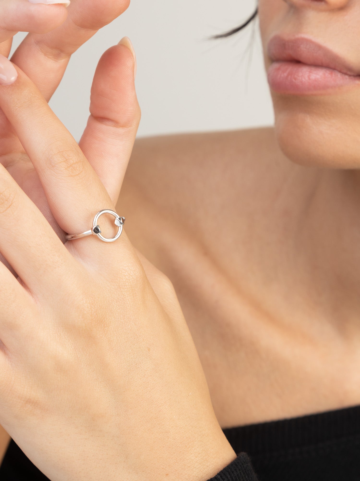 Anillo Delicado, Plata 925 bañada en rodio, Zirconia cúbica artificial, Esmalte