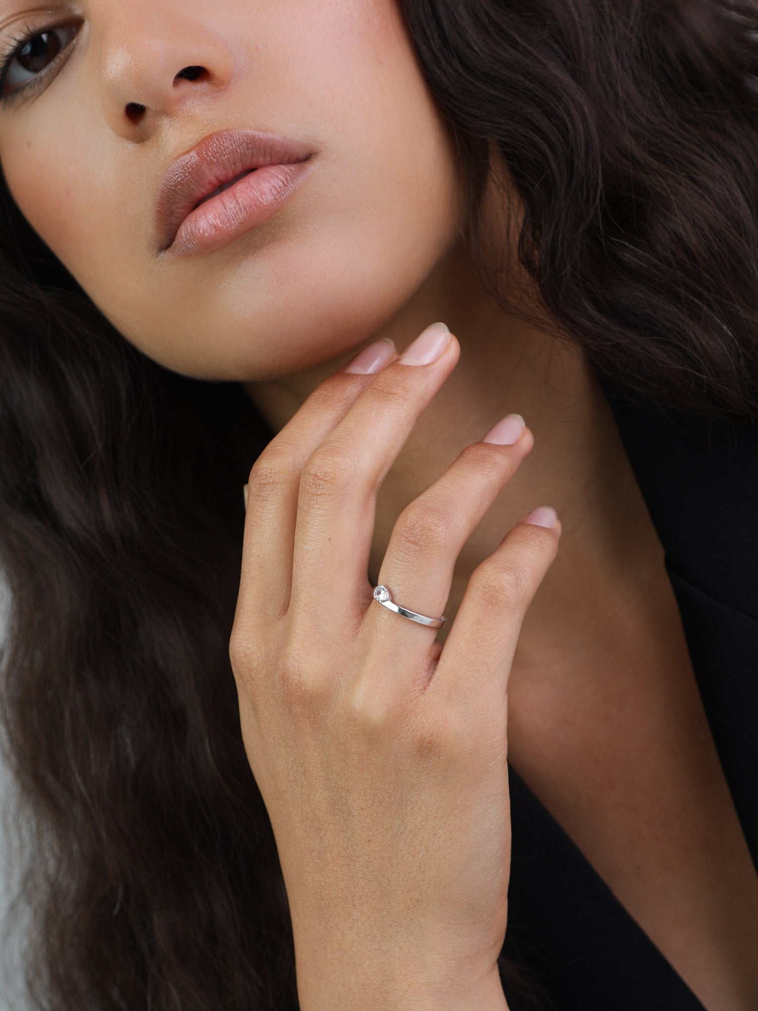 Anillo Delicado, Plata 925 bañada en rodio, Zirconia cúbica artificial