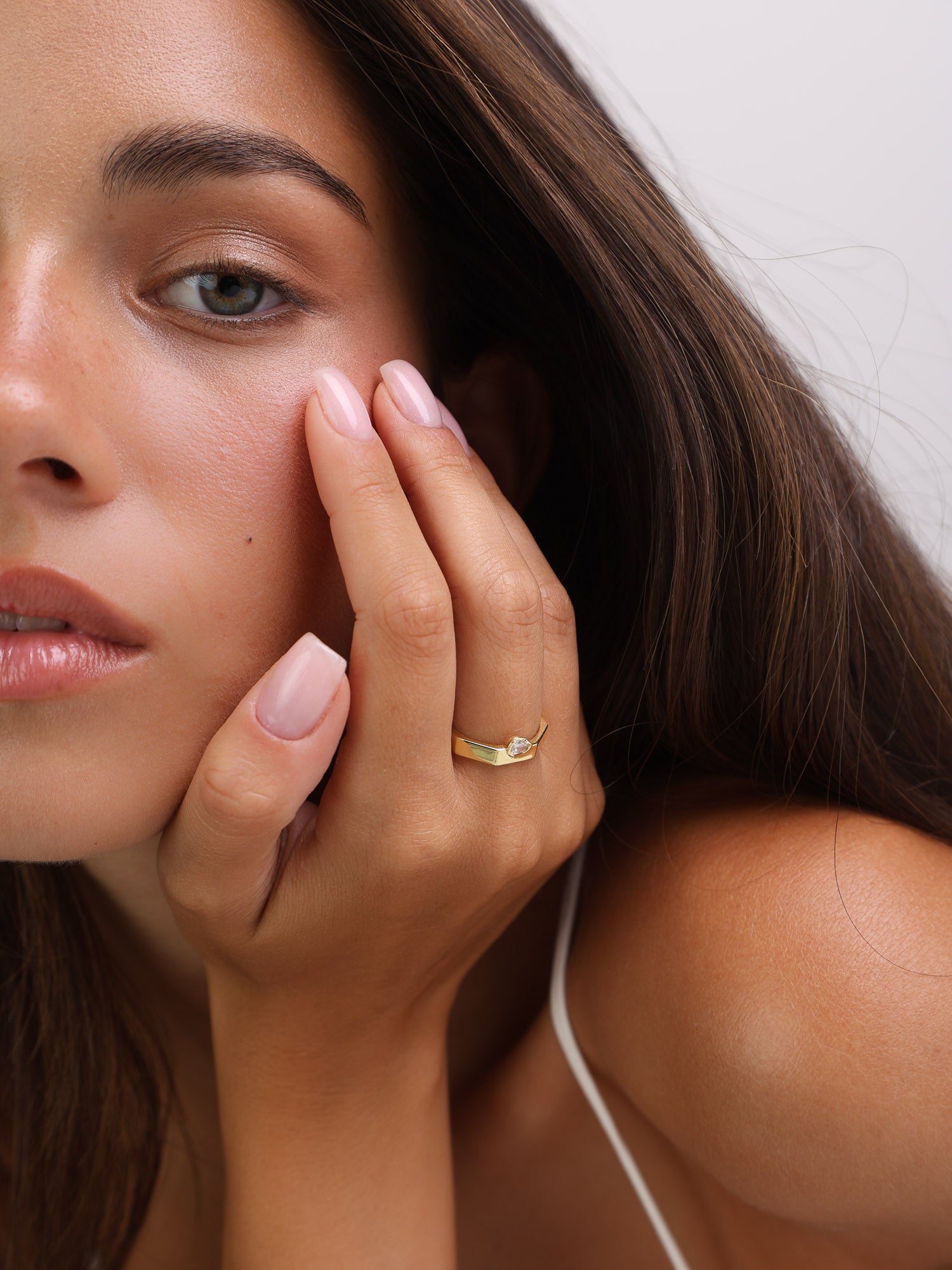Anillo Delicado, Bañado en oro, Zirconia cúbica artificial