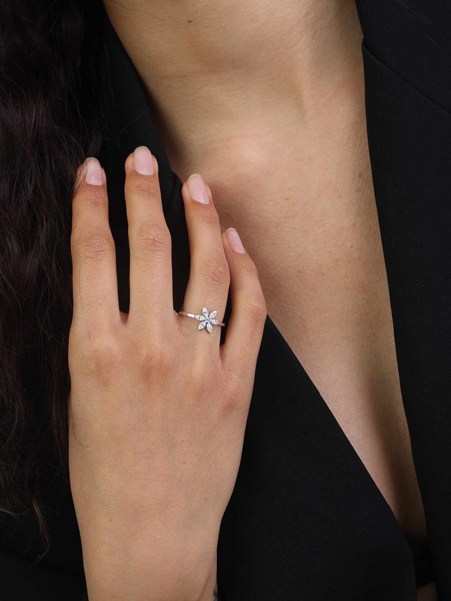 Anillo Delicado, Plata 925 bañada en rodio, Zirconia cúbica artificial, Marcasita artificial