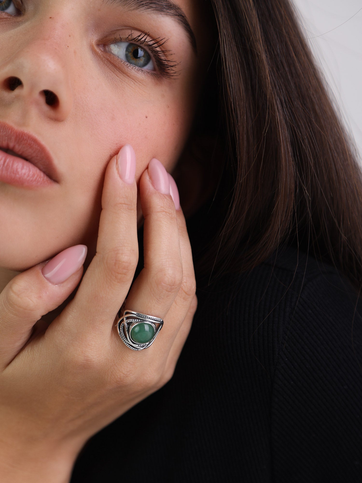Anillo de Declaración, Plata de Ley 925, Aventurina artificial