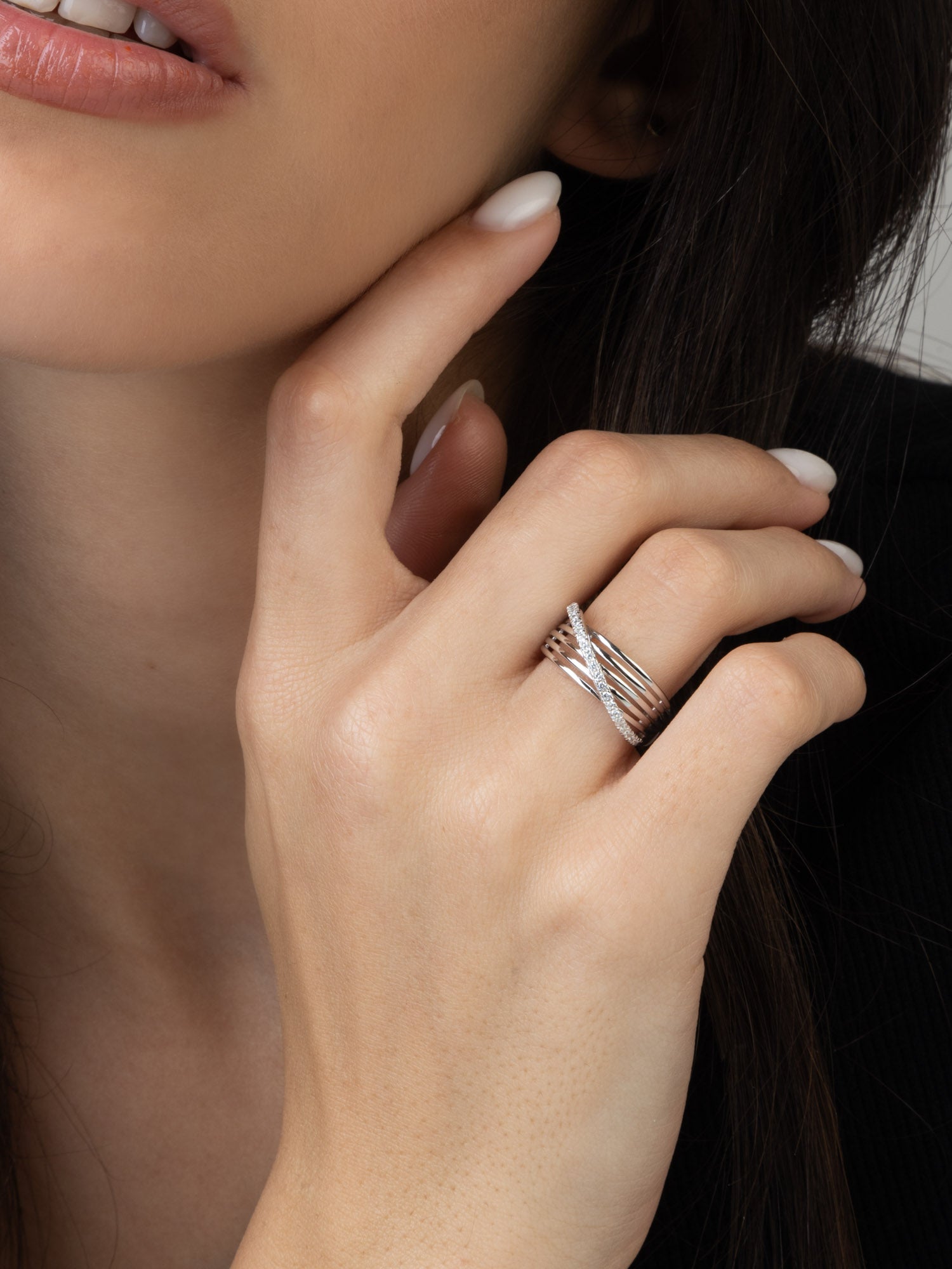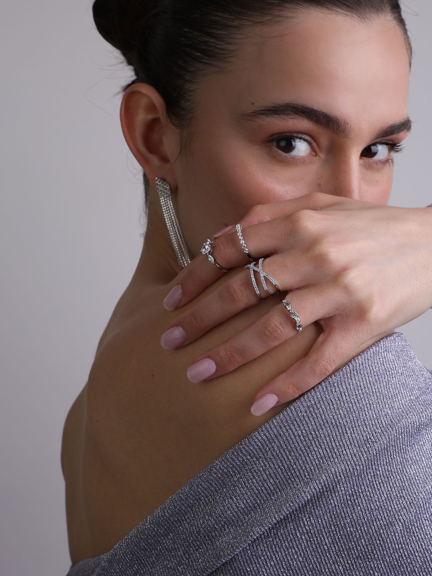 Anillo de Declaración, Plata 925 bañada en rodio, Zirconia cúbica artificial