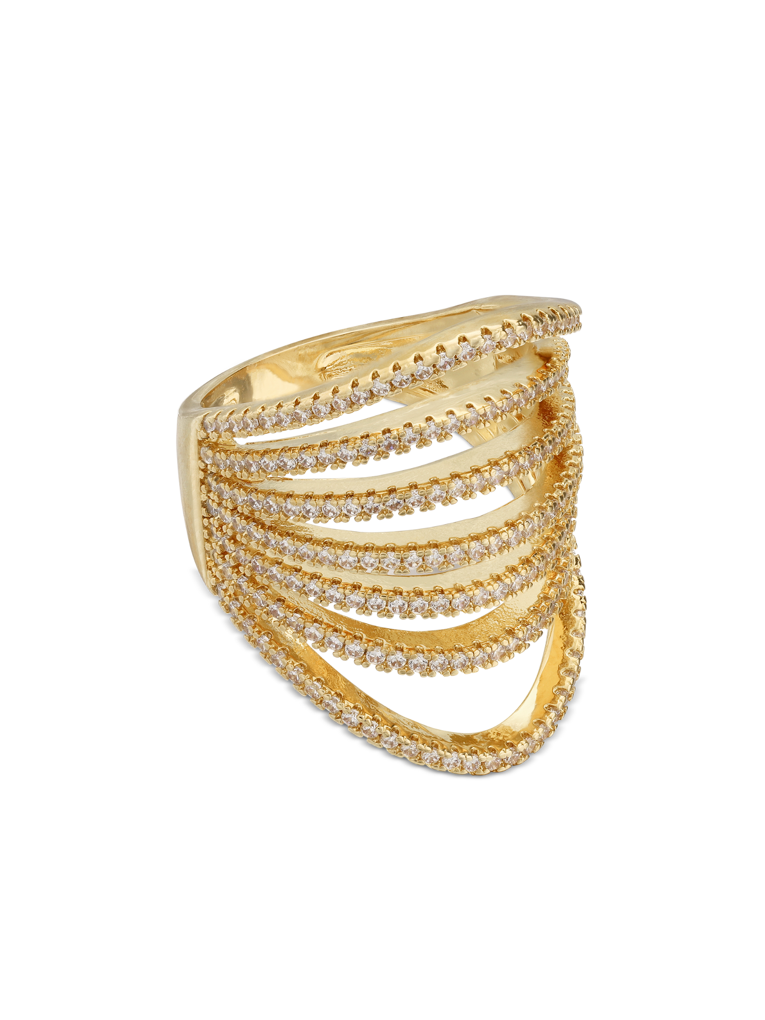 Anillo de Declaración, Bañado en oro, Zirconia cúbica artificial