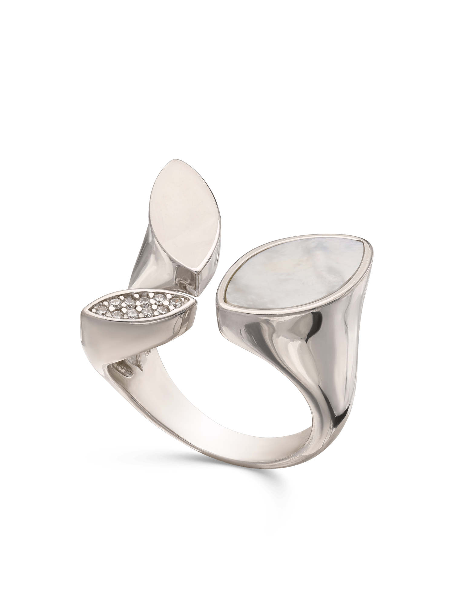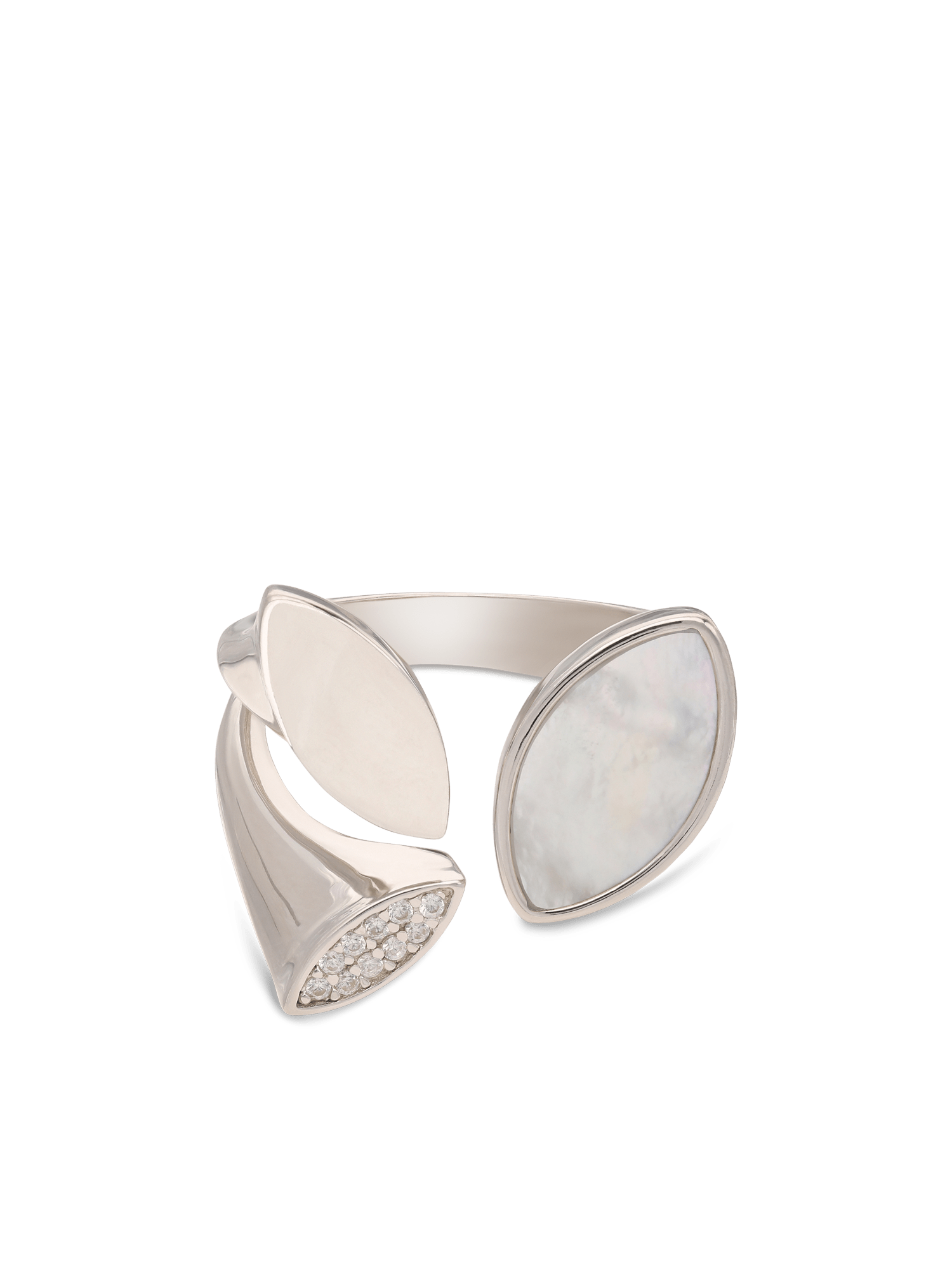 Anillo de Declaración, Plata 925 bañada en rodio, Zirconia cúbica artificial, Madreperla artificial
