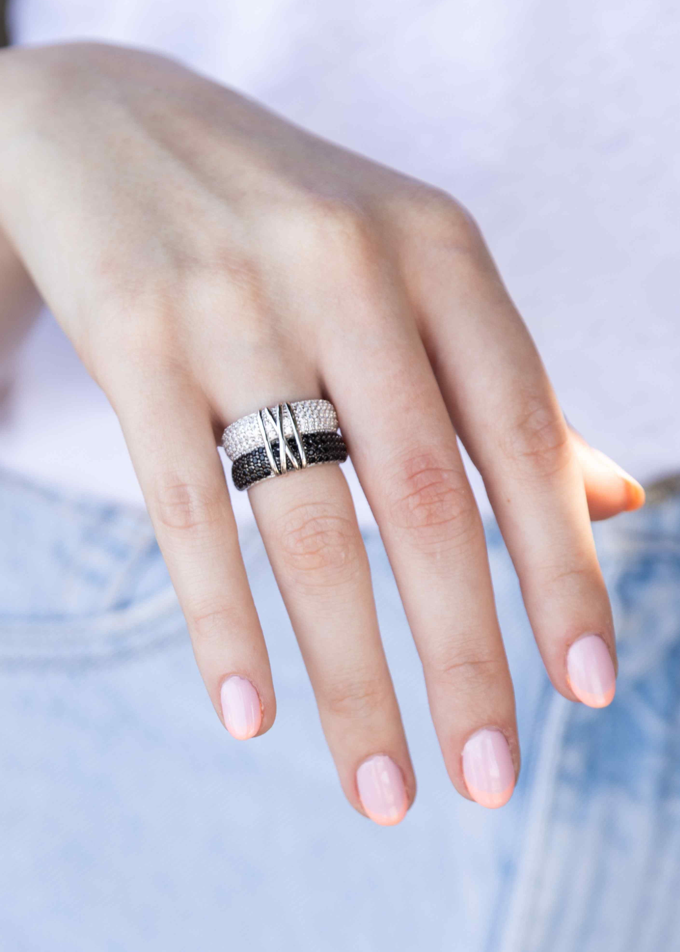 Anillo de Declaración, Plata 925 bañada en rodio, Zirconia cúbica artificial, Marcasita artificial