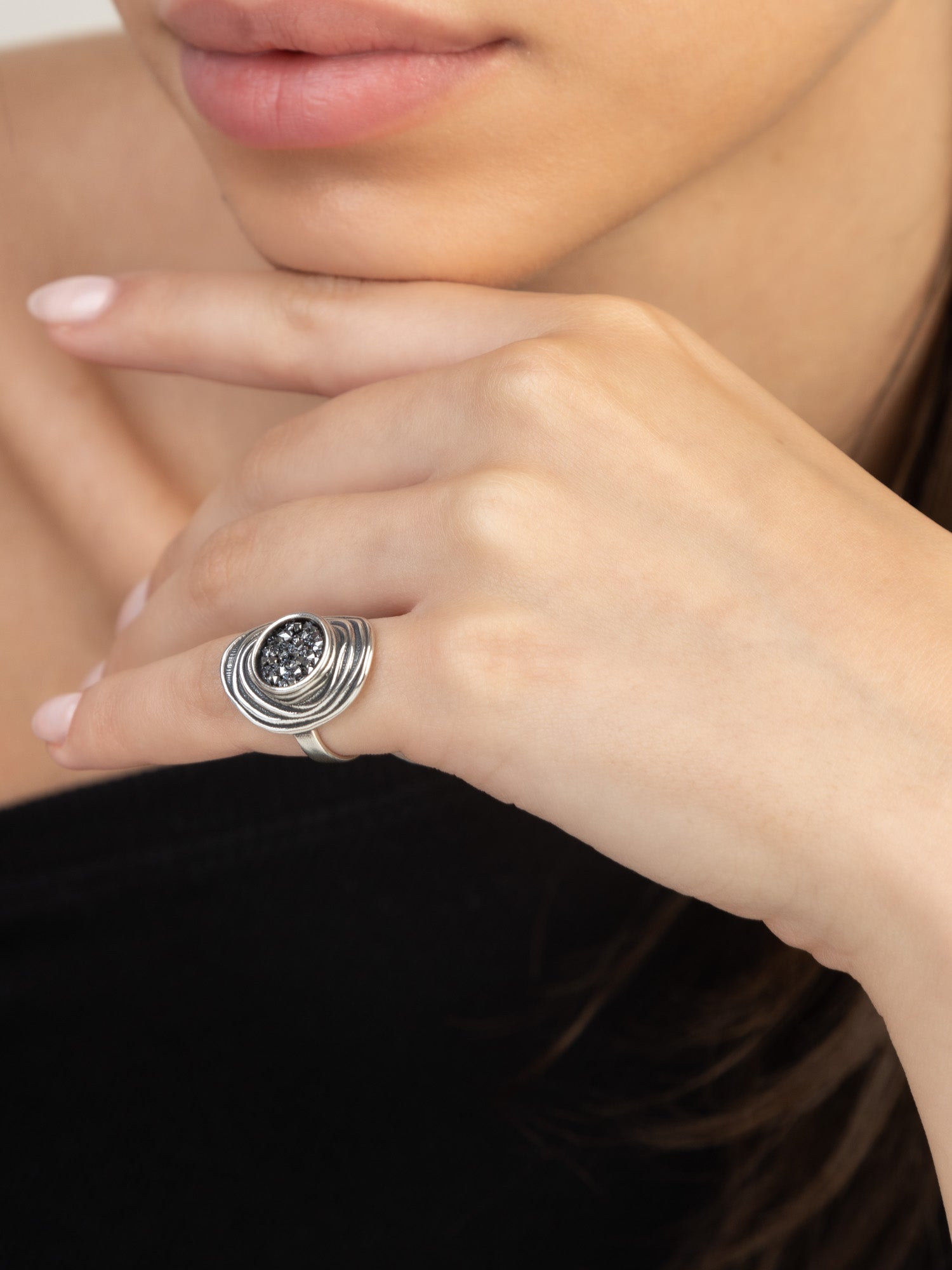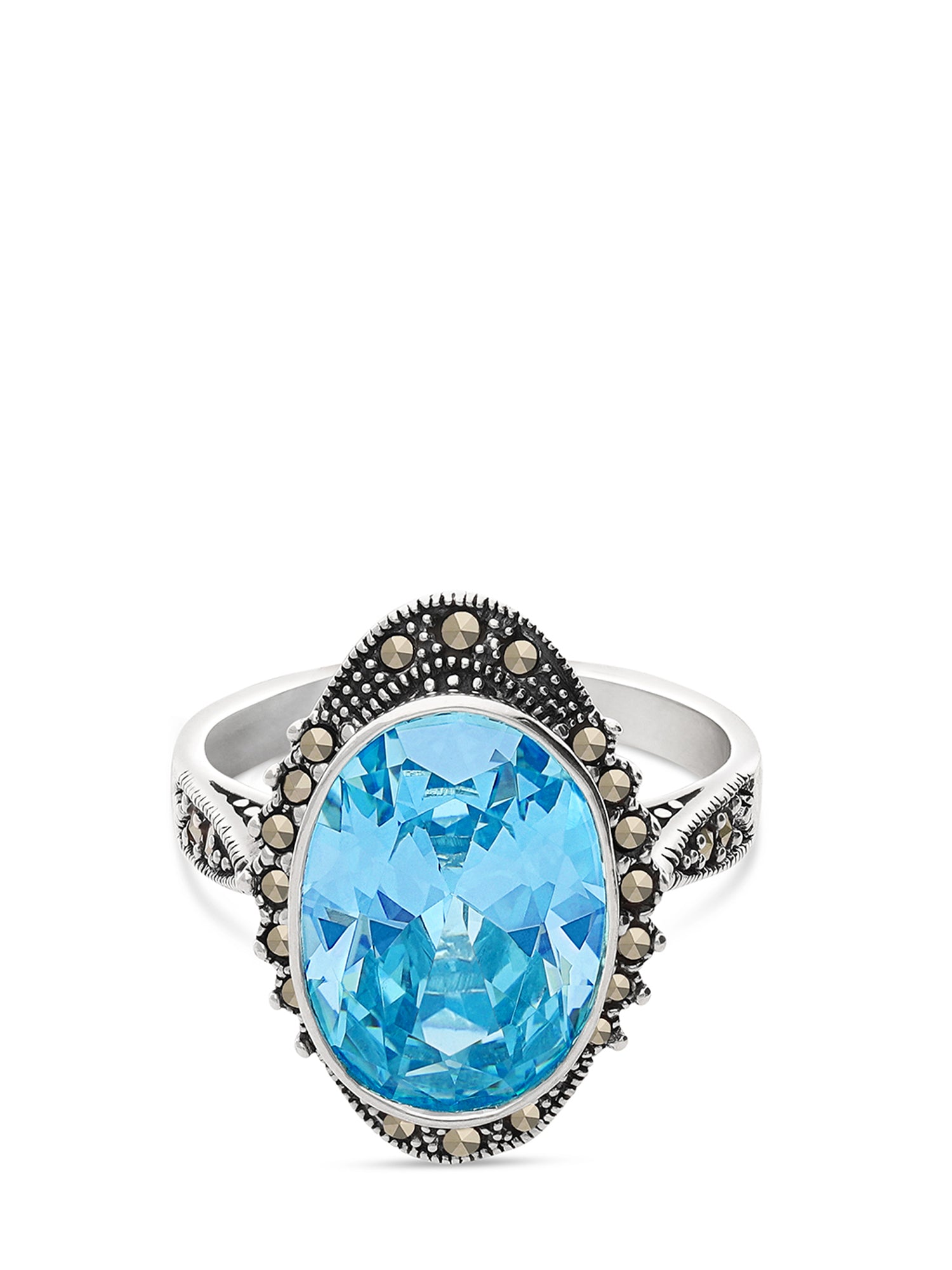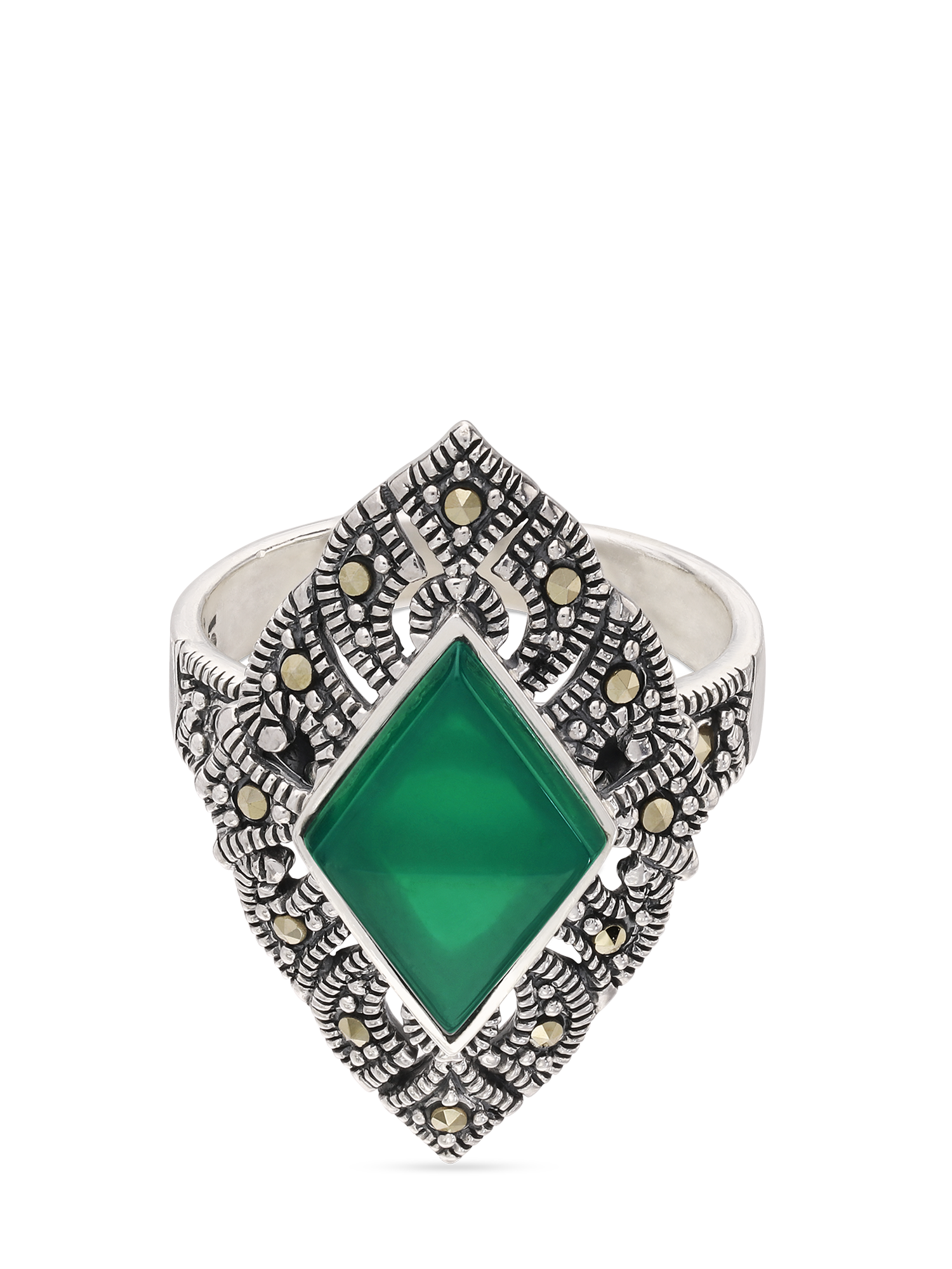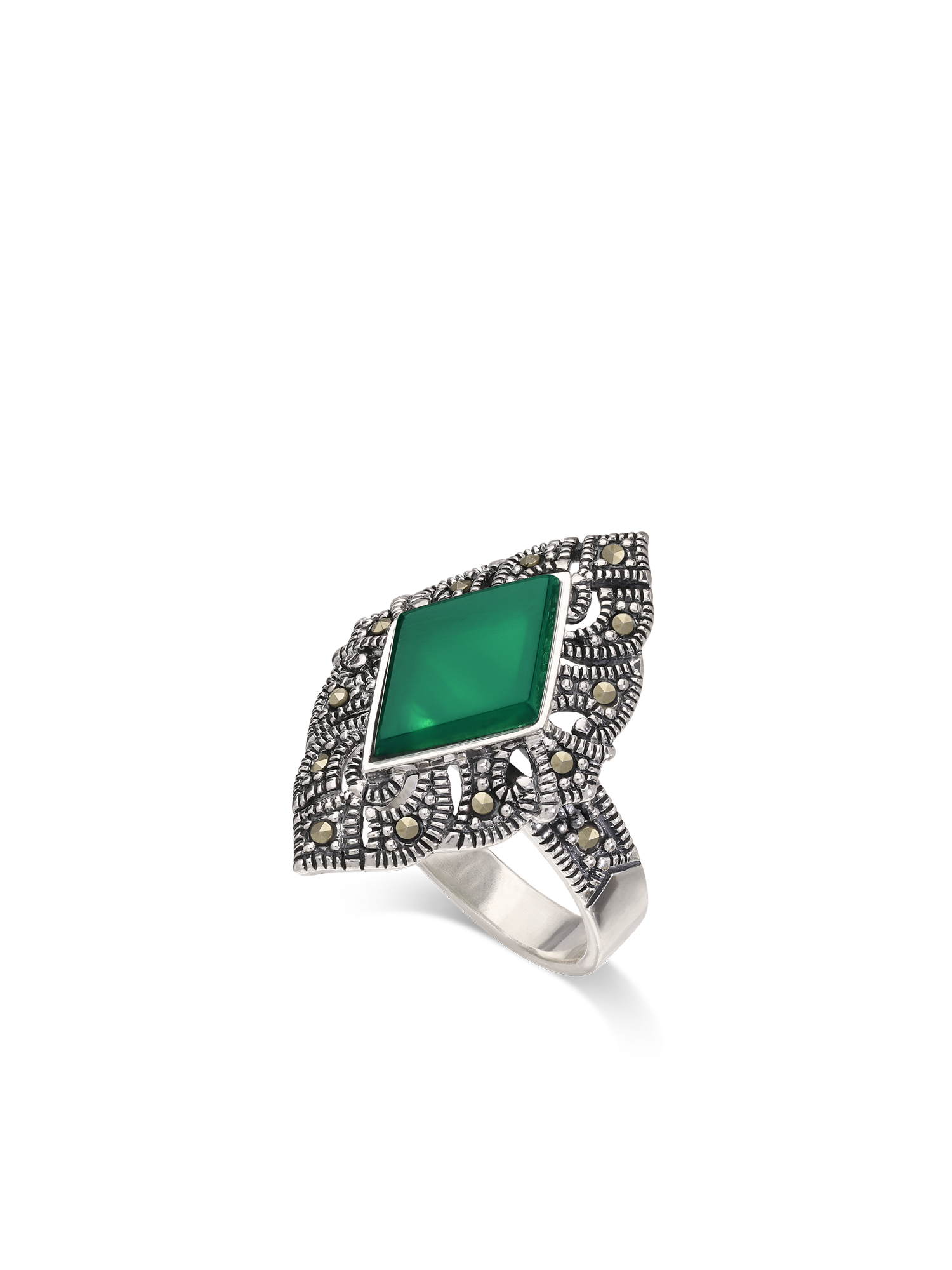 Anillo de Declaración, Plata 925 bañada en rodio, Ágata artificial, Marcasita artificial