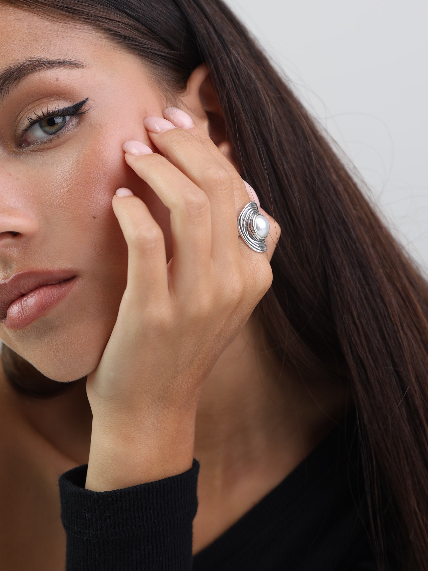 Anillo de Declaración, Plata de Ley 925, Perla Swarovski artificial