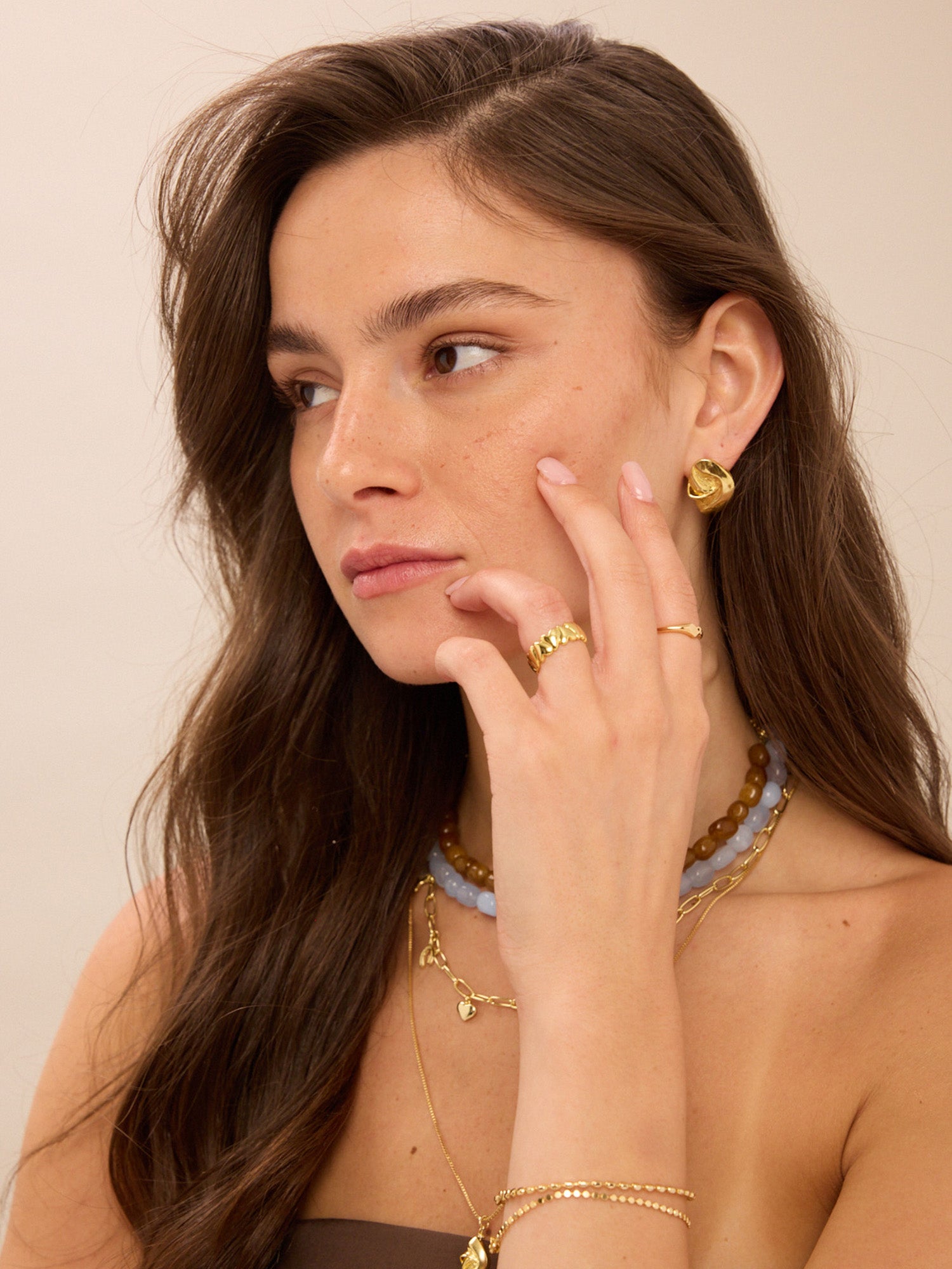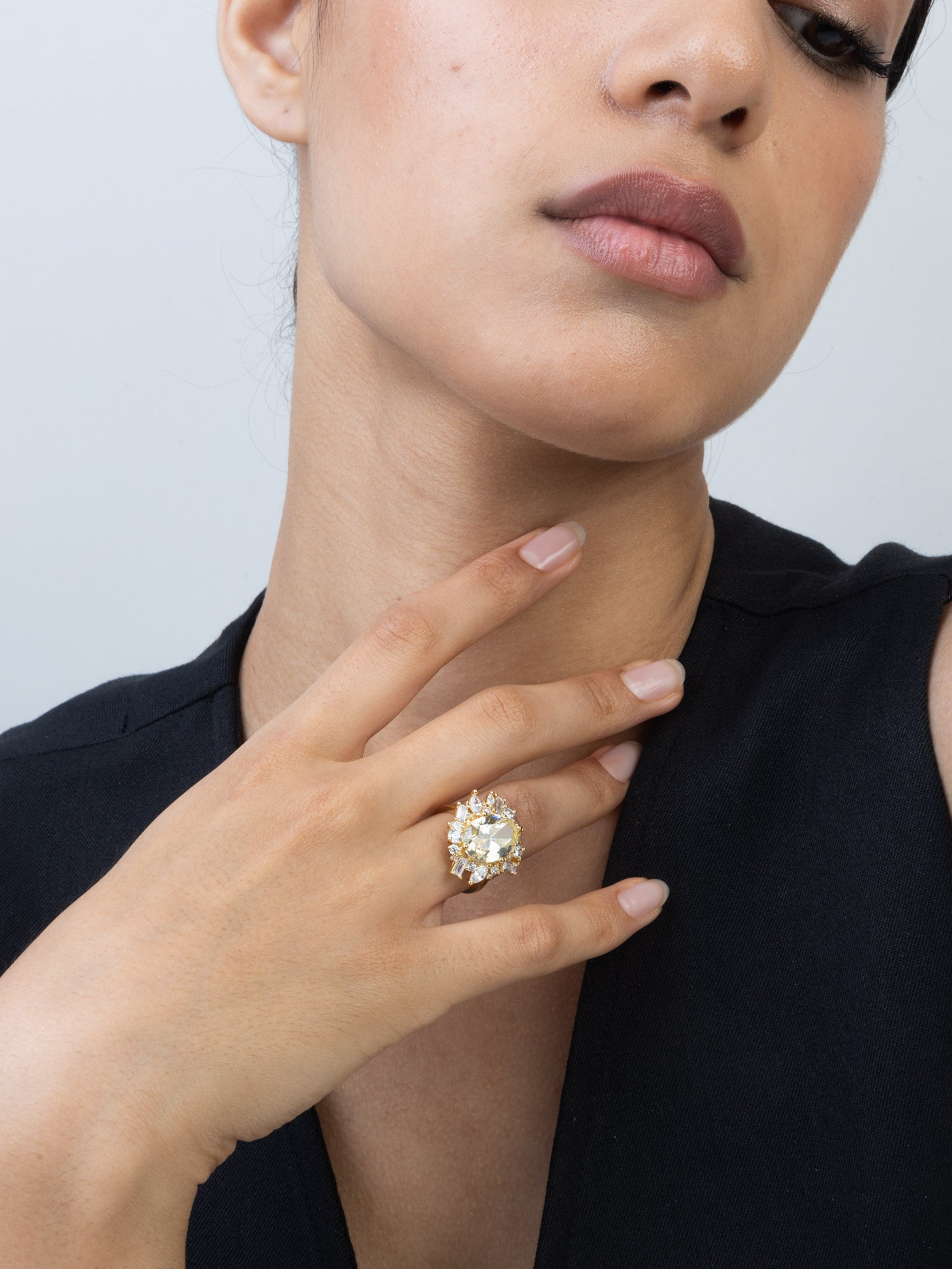 Anillo de Declaración, Bañado en oro, Zirconia cúbica artificial, Calcedonia artificial