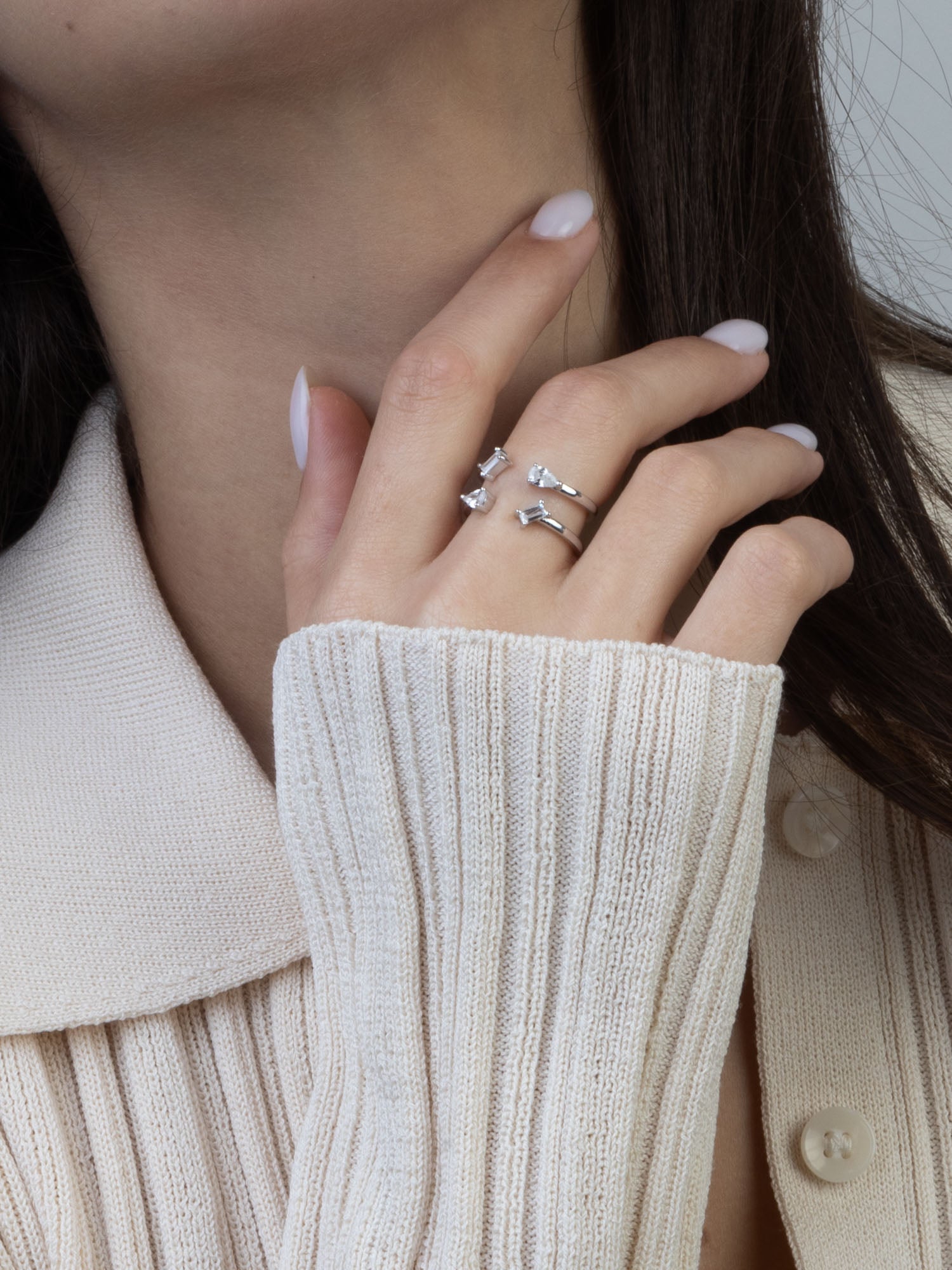 Anillo de Declaración, Plata de Ley 925, Zirconia cúbica artificial