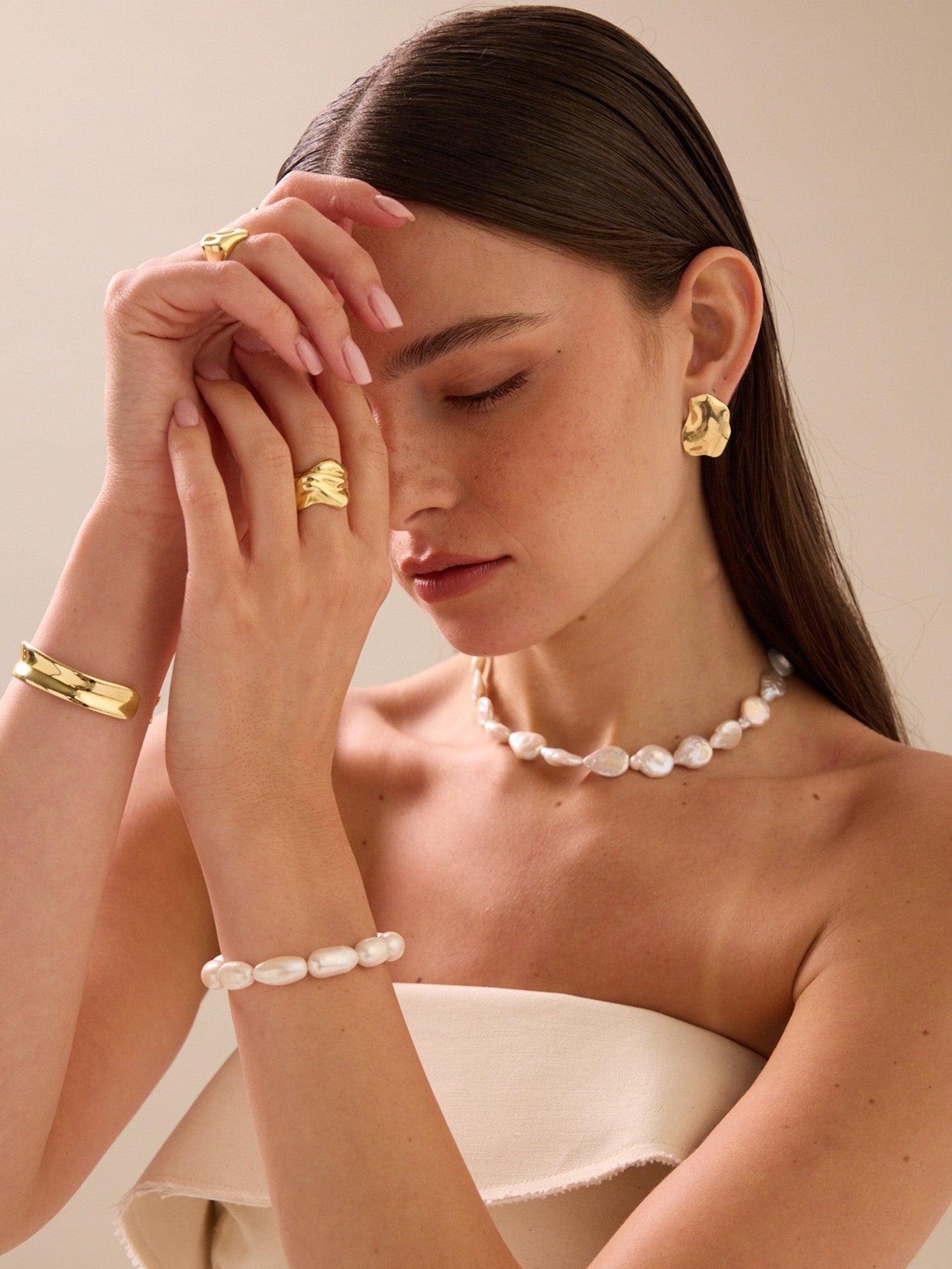 Anillo de Declaración, Bañado en oro, Zirconia cúbica artificial, Perla cultivada