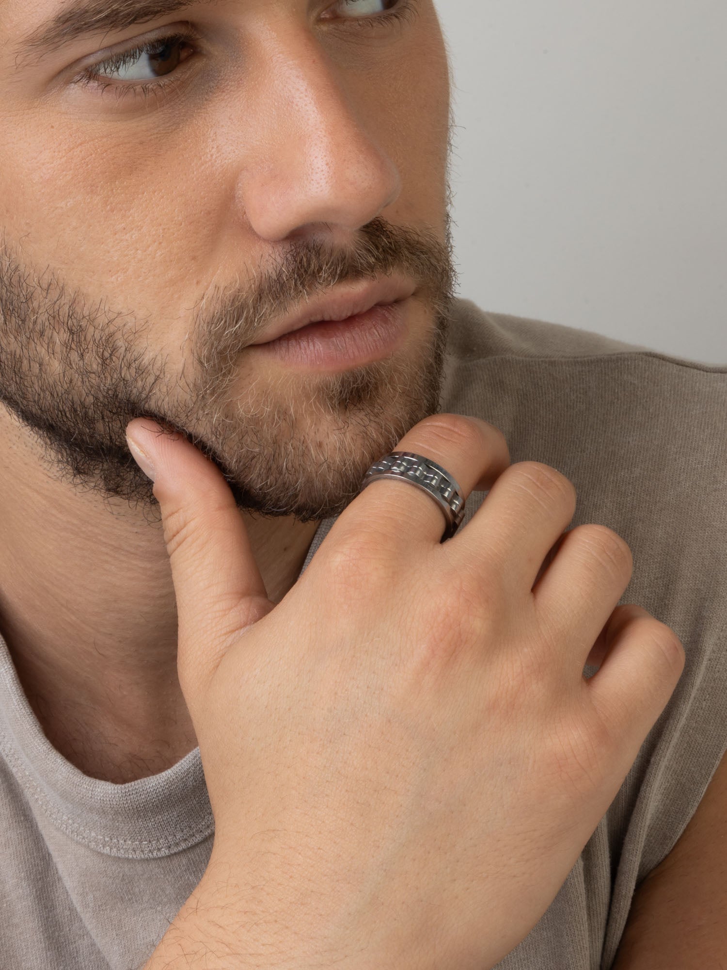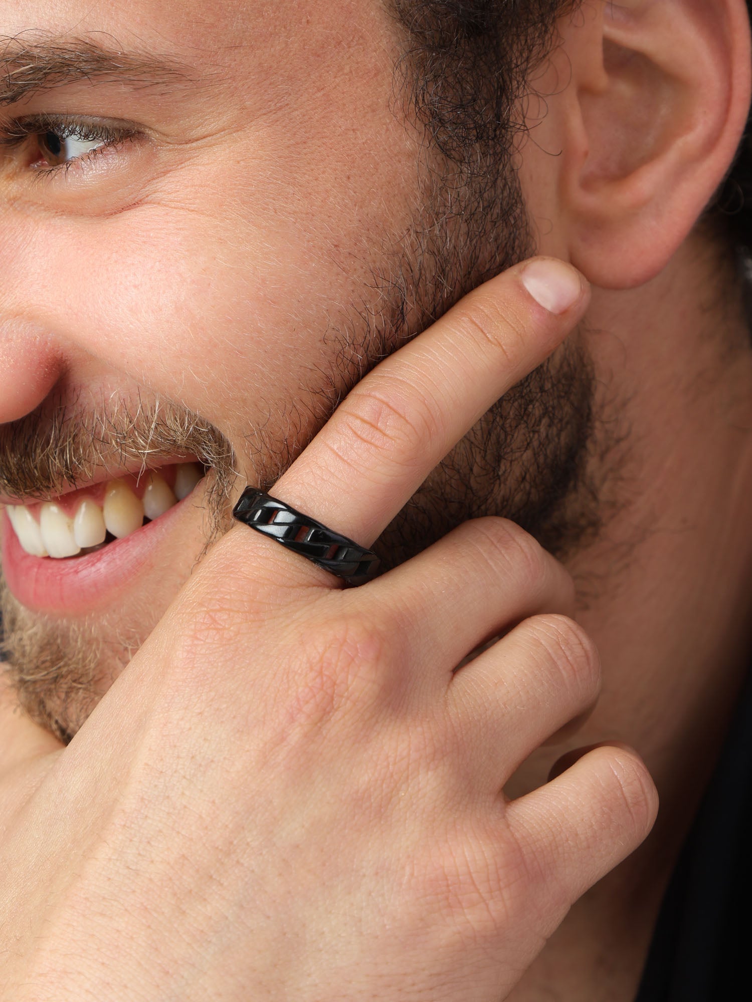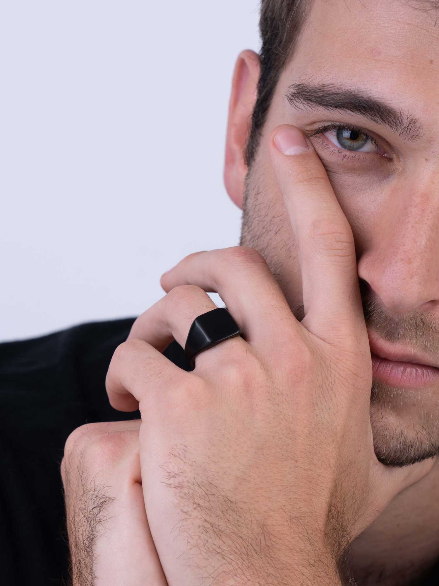 anillo de hombre, Acero inoxidable, Ónix artificial