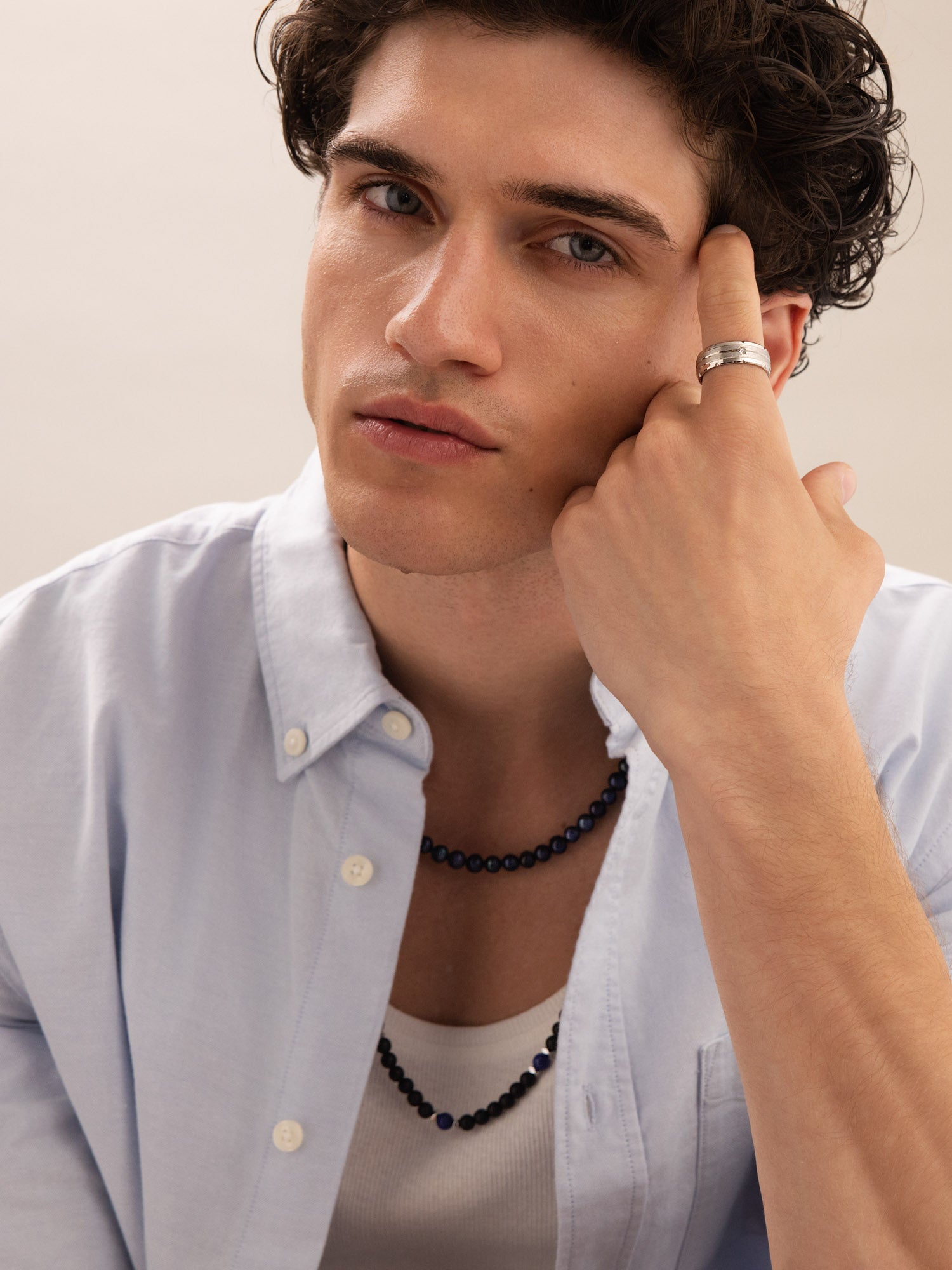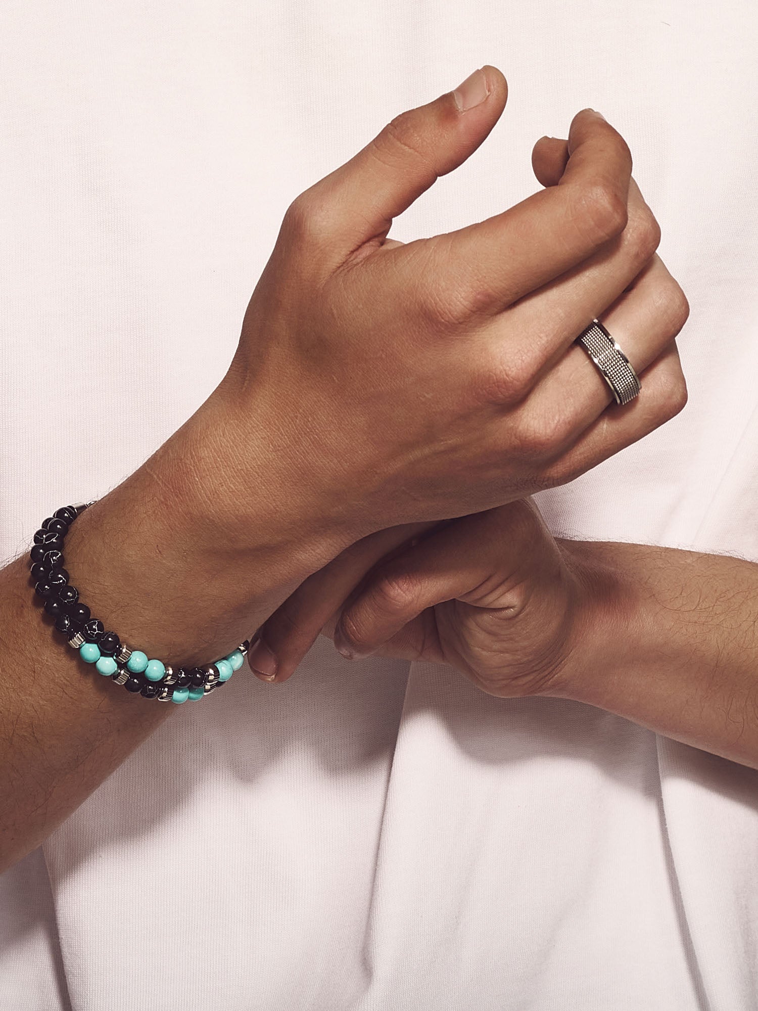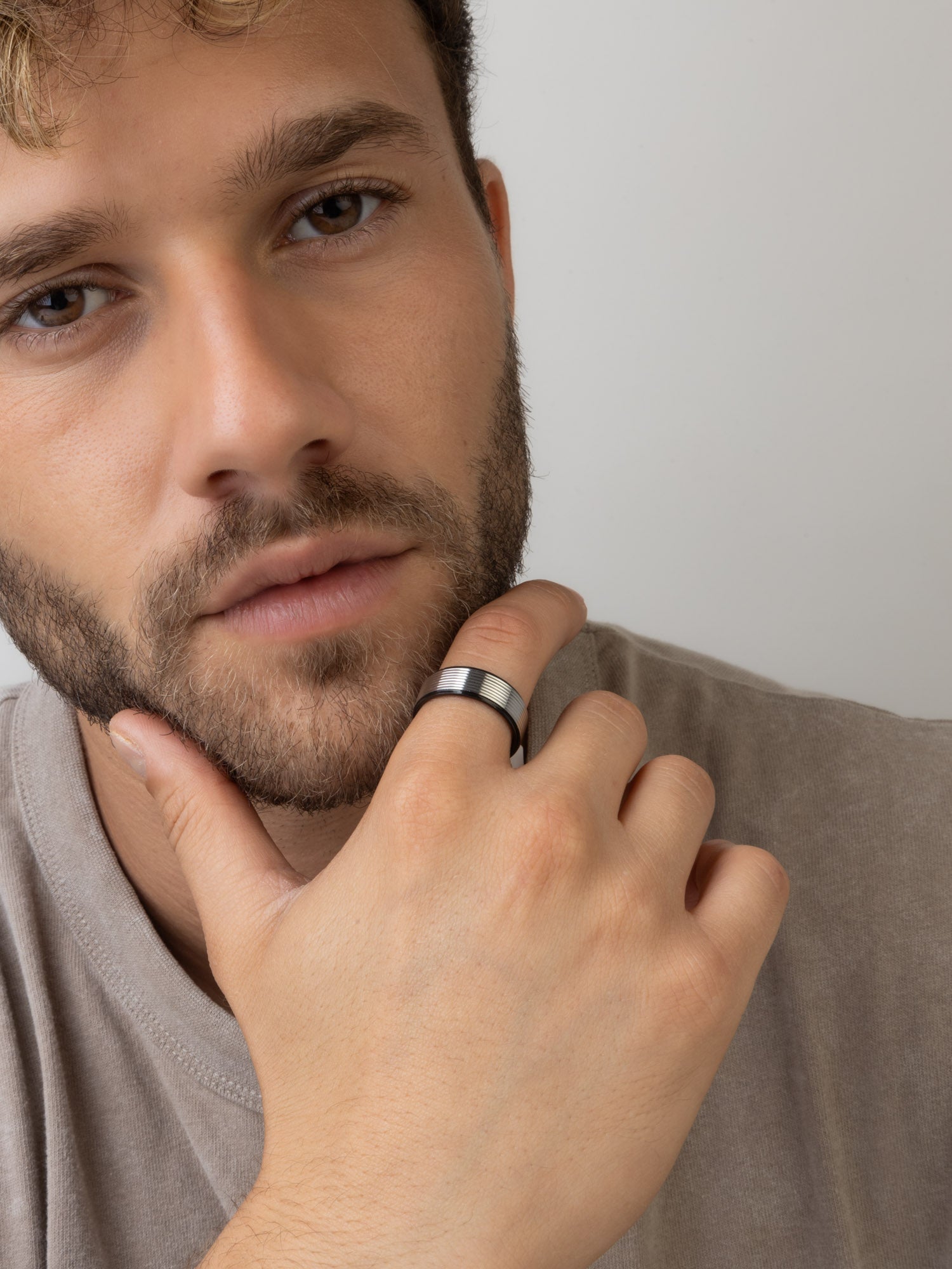 anillo de hombre, Acero inoxidable, Ónix artificial