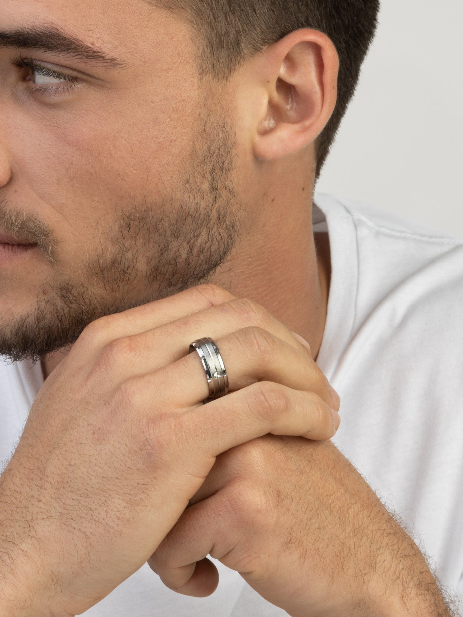 anillo de hombre, Acero inoxidable, Zirconia cúbica artificial
