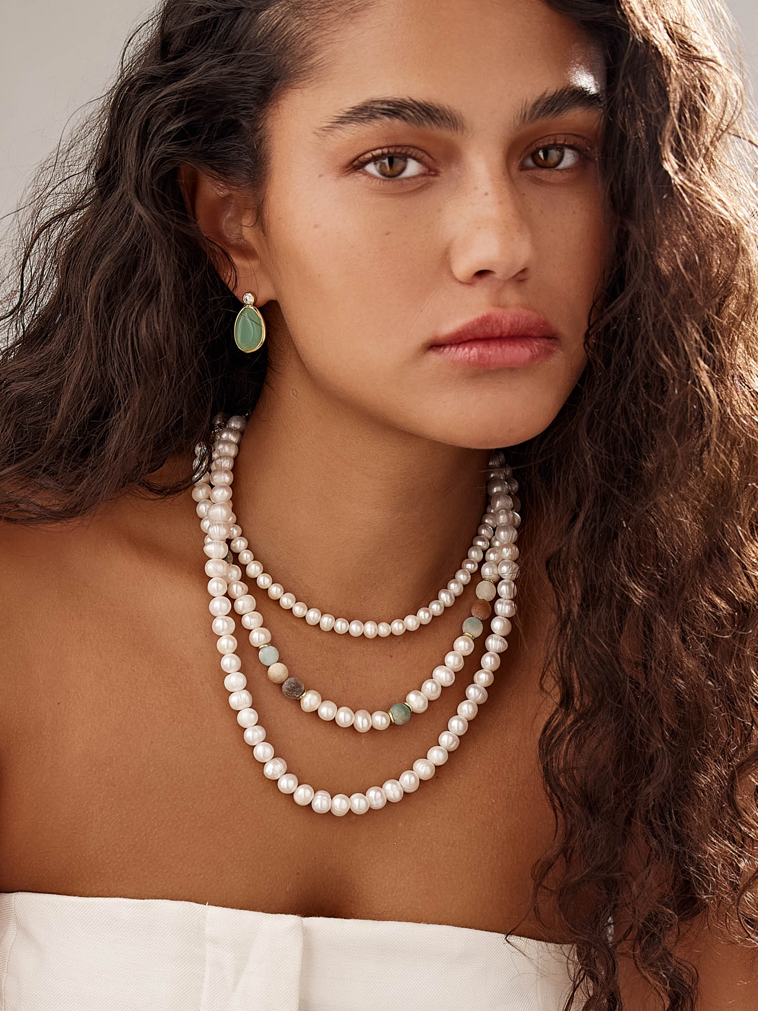 collar de piedra, Bañado en oro, Zirconia cúbica artificial, Perla cultivada, Vidrio de plomo