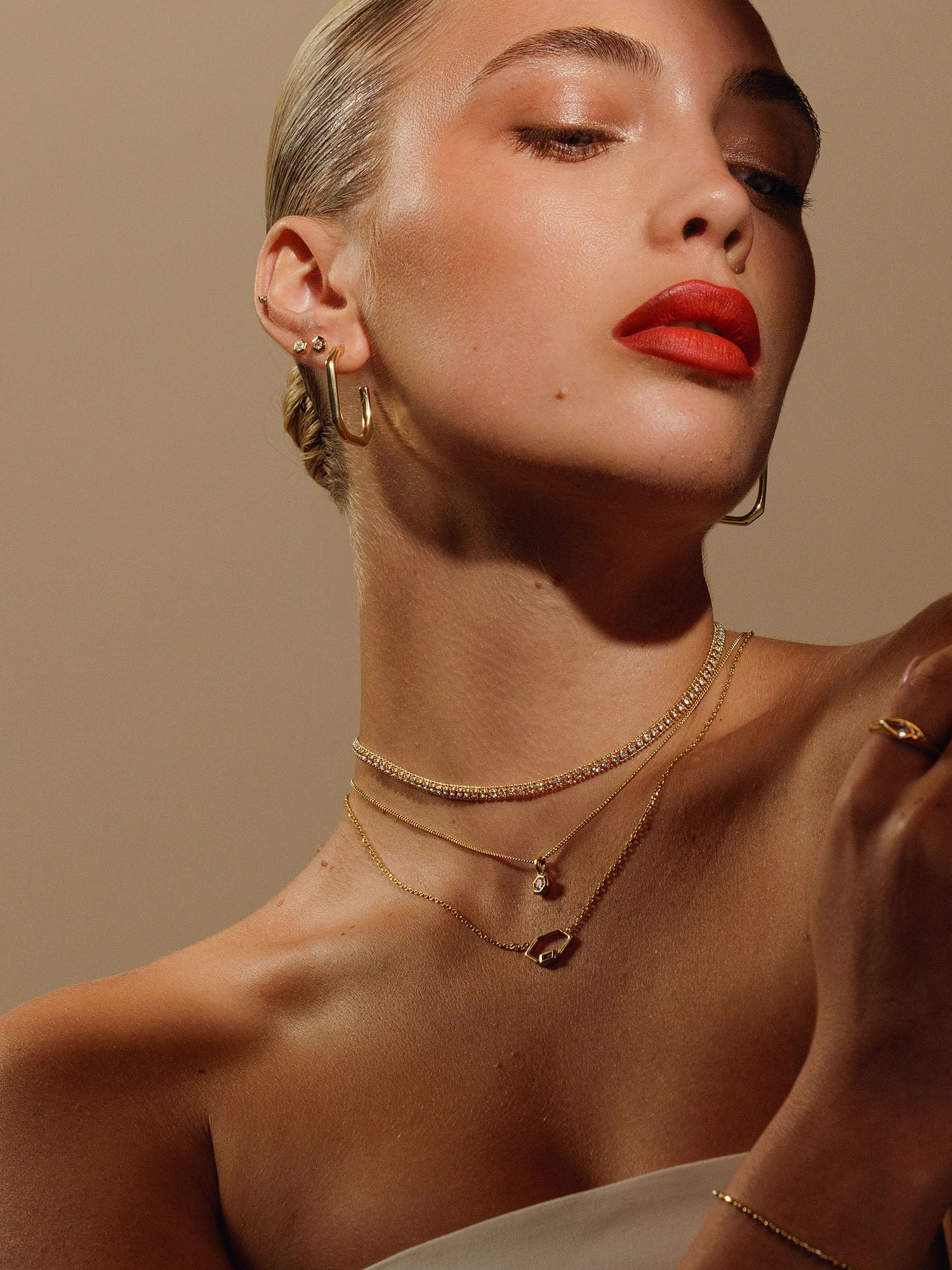Collar gargantilla, collar de tenis, Bañado en oro, Zirconia cúbica artificial