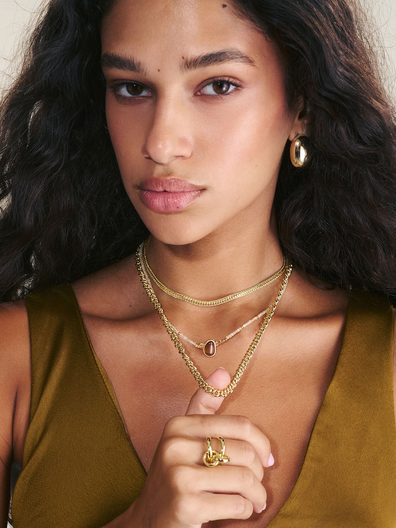 collar de piedra, Bañado en oro, Vidrio de plomo, Cuarzo artificial