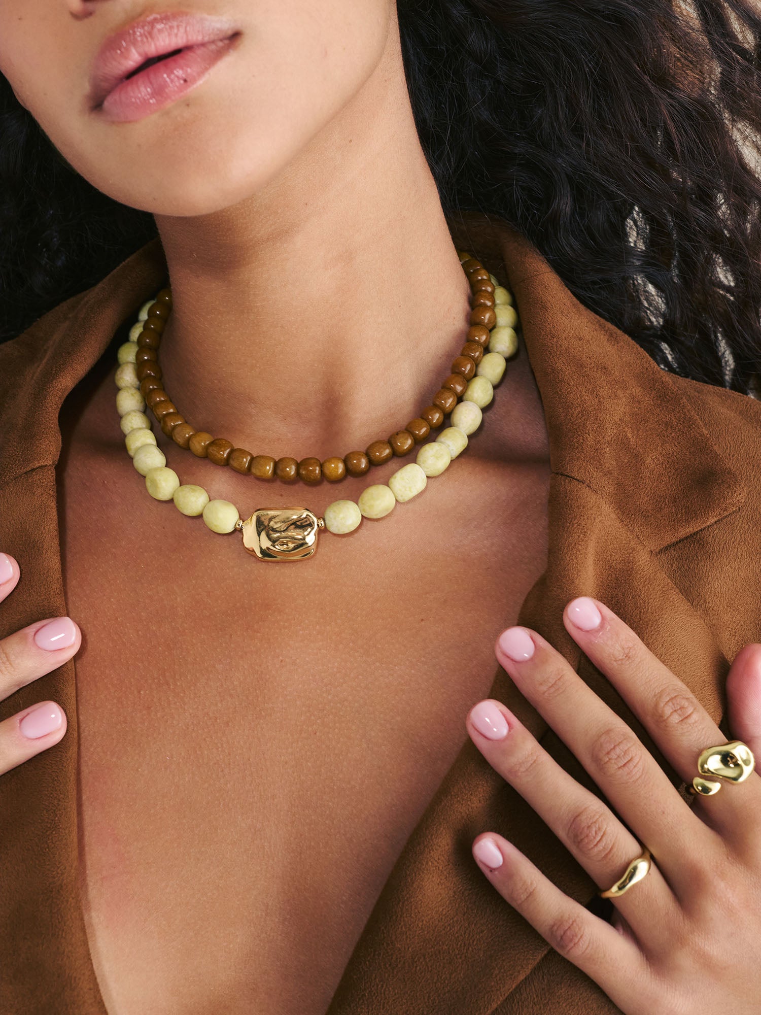 Collar gargantilla, Bañado en oro, Jadeíta artificial