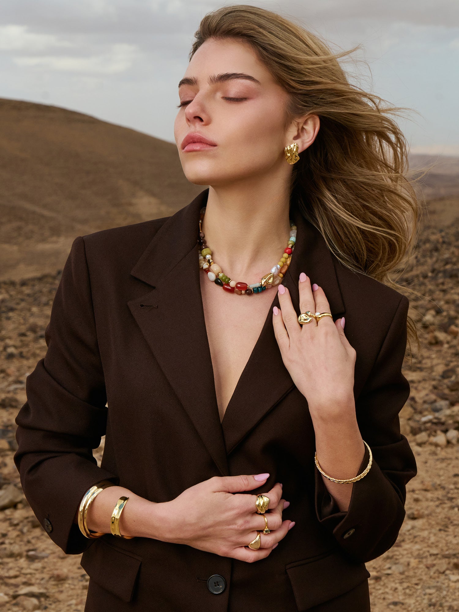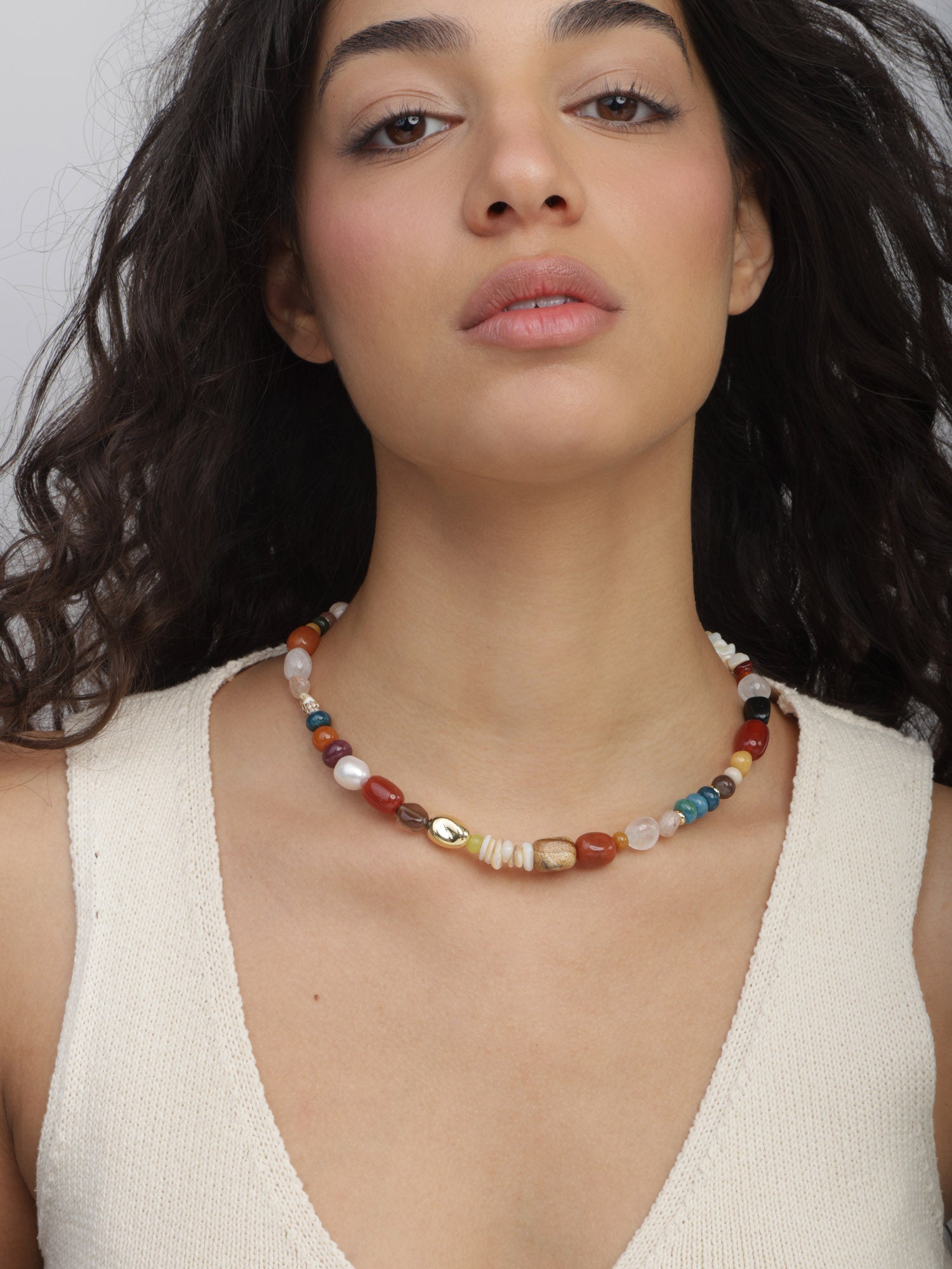 collar de piedra, Bañado en oro, Ágata artificial, Turmalina artificial, Cornalina artificial, Madreperla artificial, Jadeíta artificial, Jaspe artifi