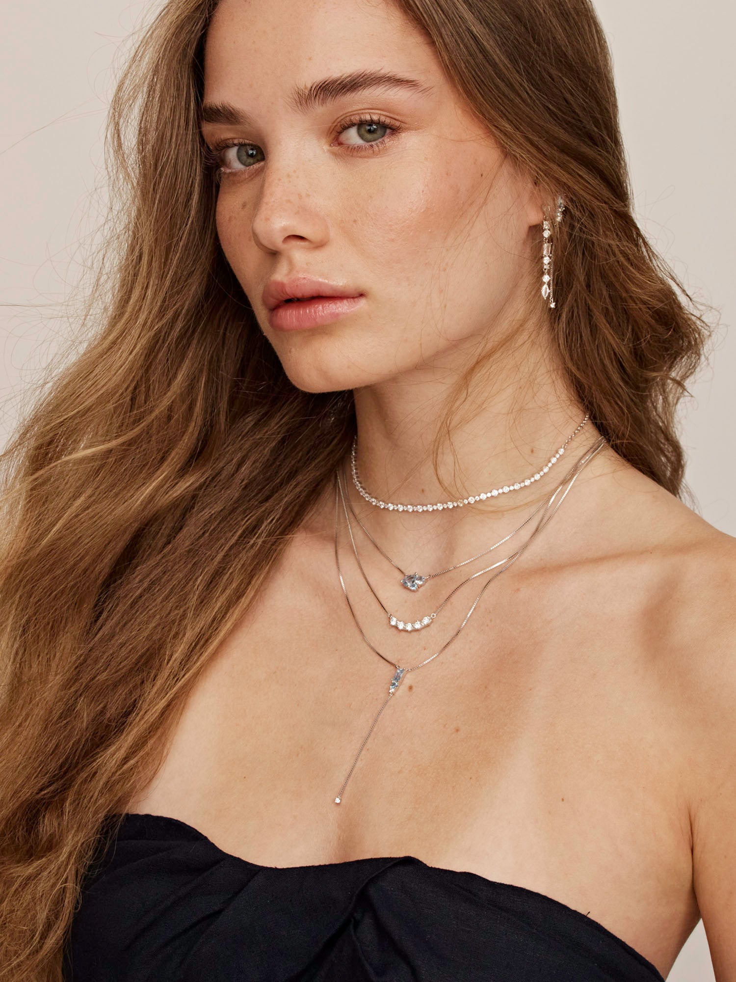 Collar colgante, Plata de Ley 925, Plata 925 bañada en rodio, Zirconia cúbica artificial, Cristal Swarovski artificial