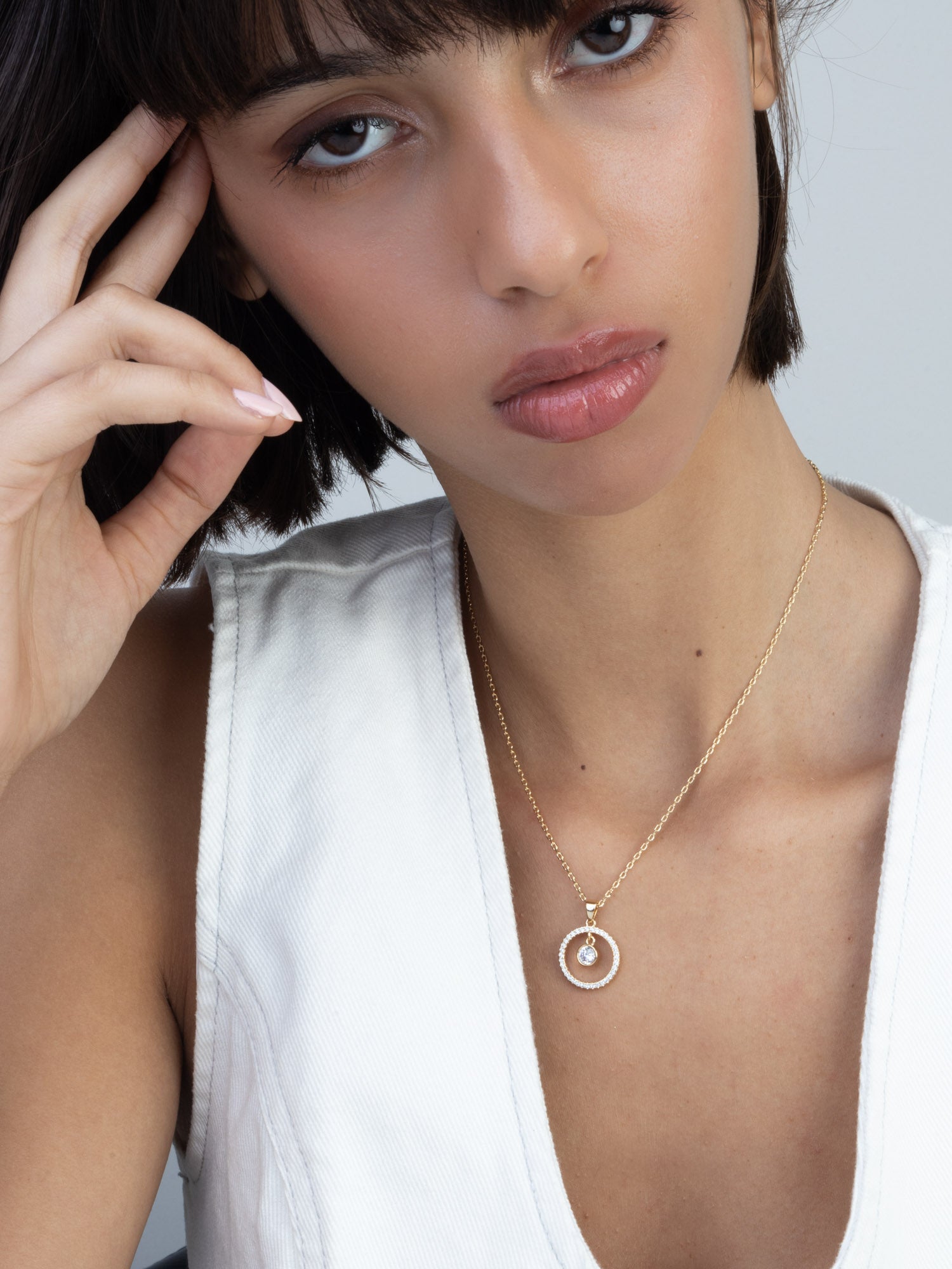 Collar colgante, Bañado en oro, Zirconia cúbica artificial