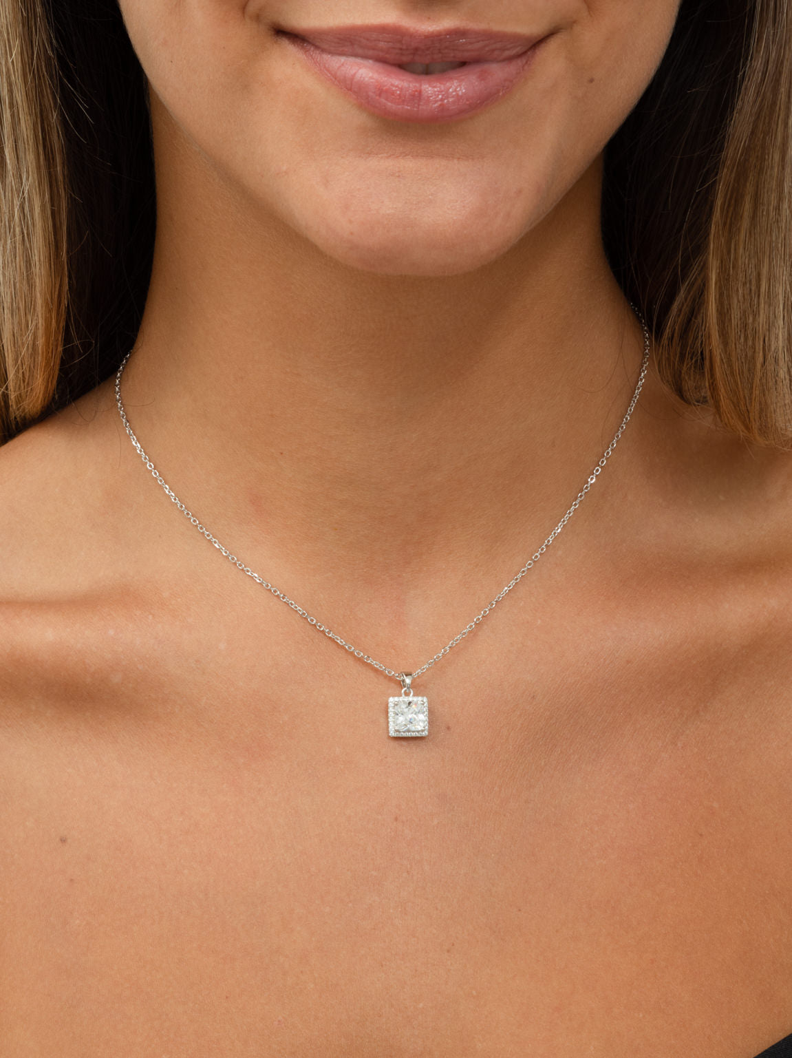 Collar colgante, Plata de Ley 925, Plata 925 bañada en rodio, Zirconia cúbica artificial