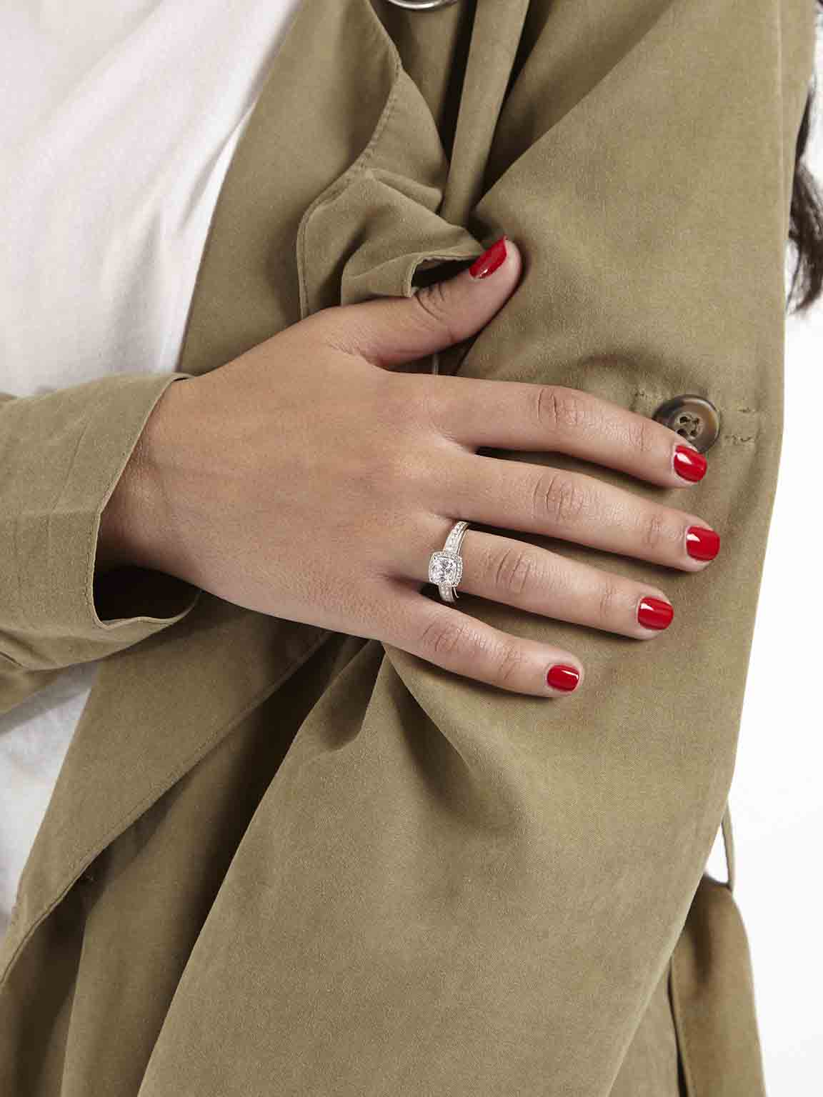 Anillo Delicado, Plata 925 bañada en rodio, Zirconia cúbica artificial