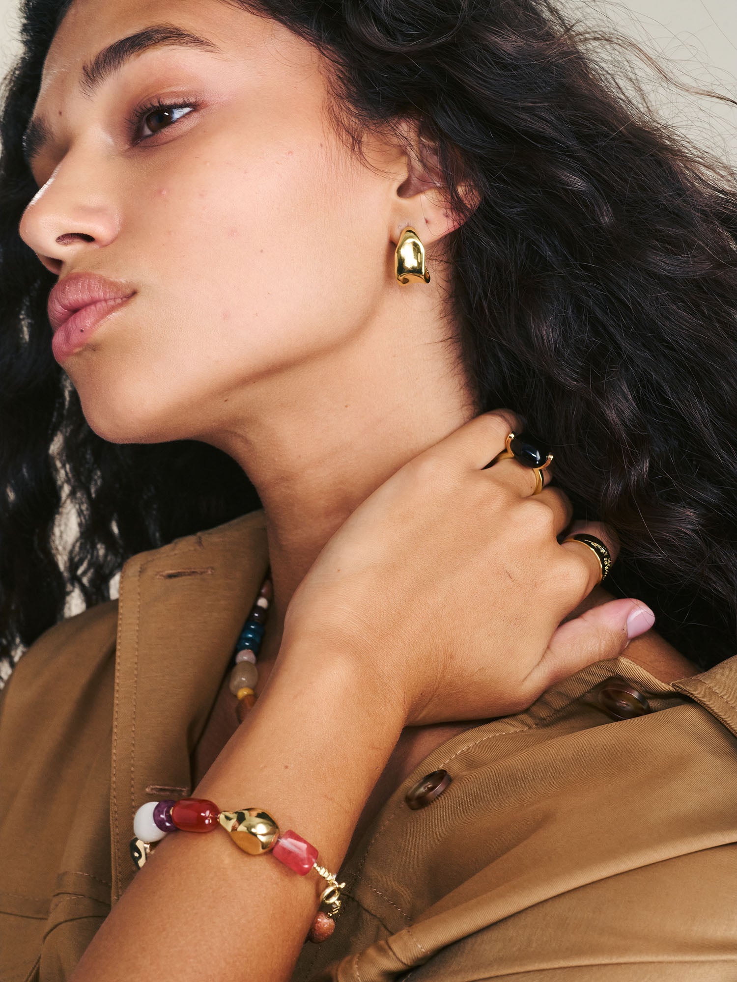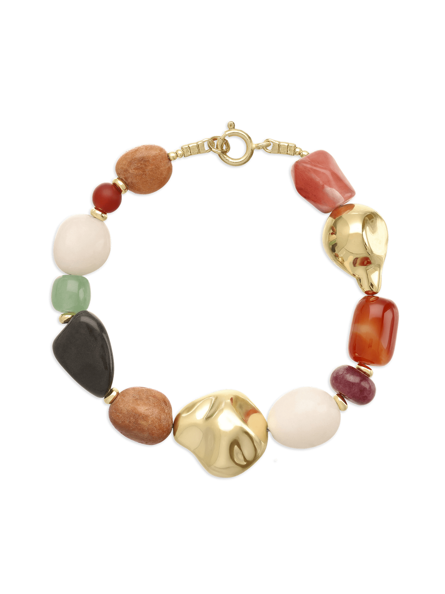 Pulsera de piedra, Bañado en oro, Aventurina artificial, Ónix artificial, Jadeíta artificial, Jaspe artificial