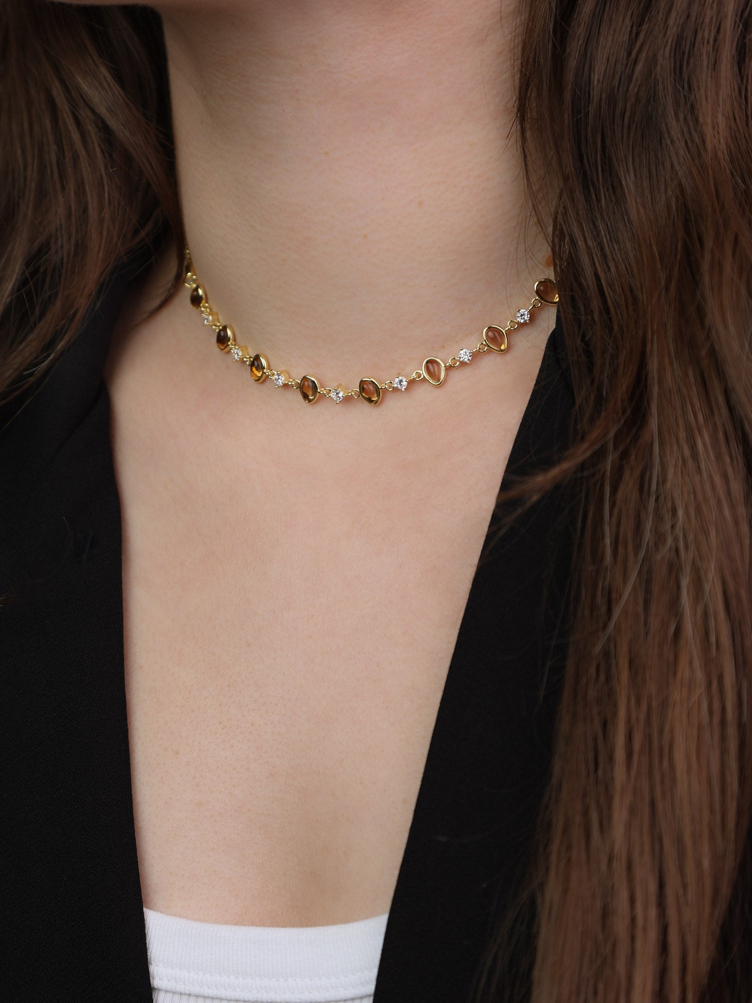 Collar gargantilla, Bañado en oro, Zirconia cúbica artificial, Vidrio de plomo