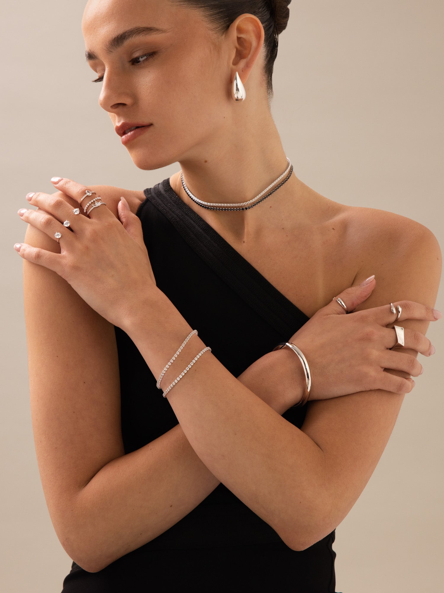 Gotas, Plata 925 bañada en rodio, Zirconia cúbica artificial