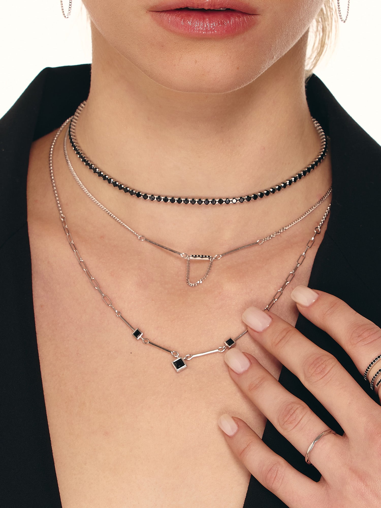 collar de tenis, Plata 925 bañada en rodio, Zirconia cúbica artificial