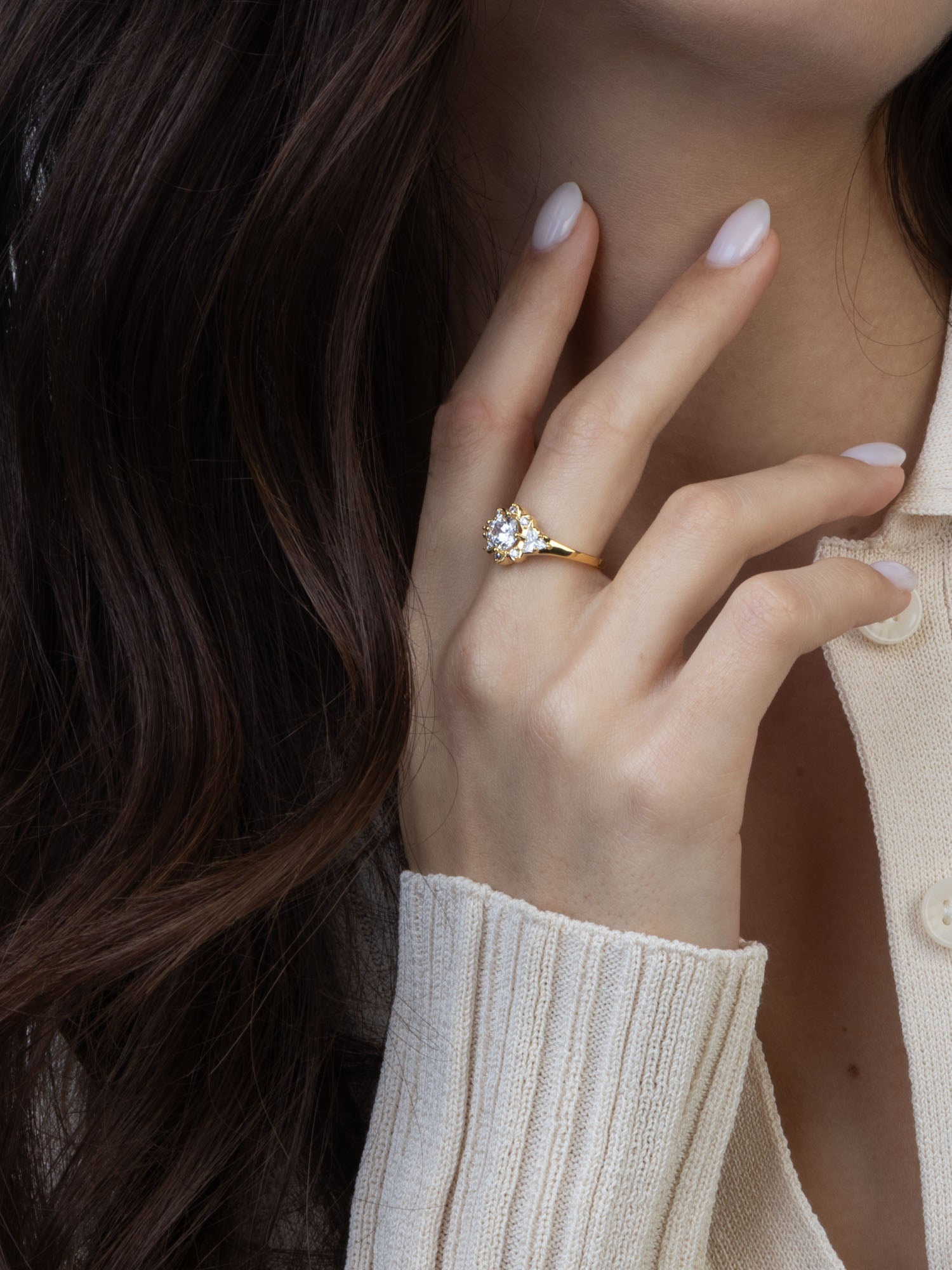Anillo Delicado, Bañado en oro, Zirconia cúbica artificial