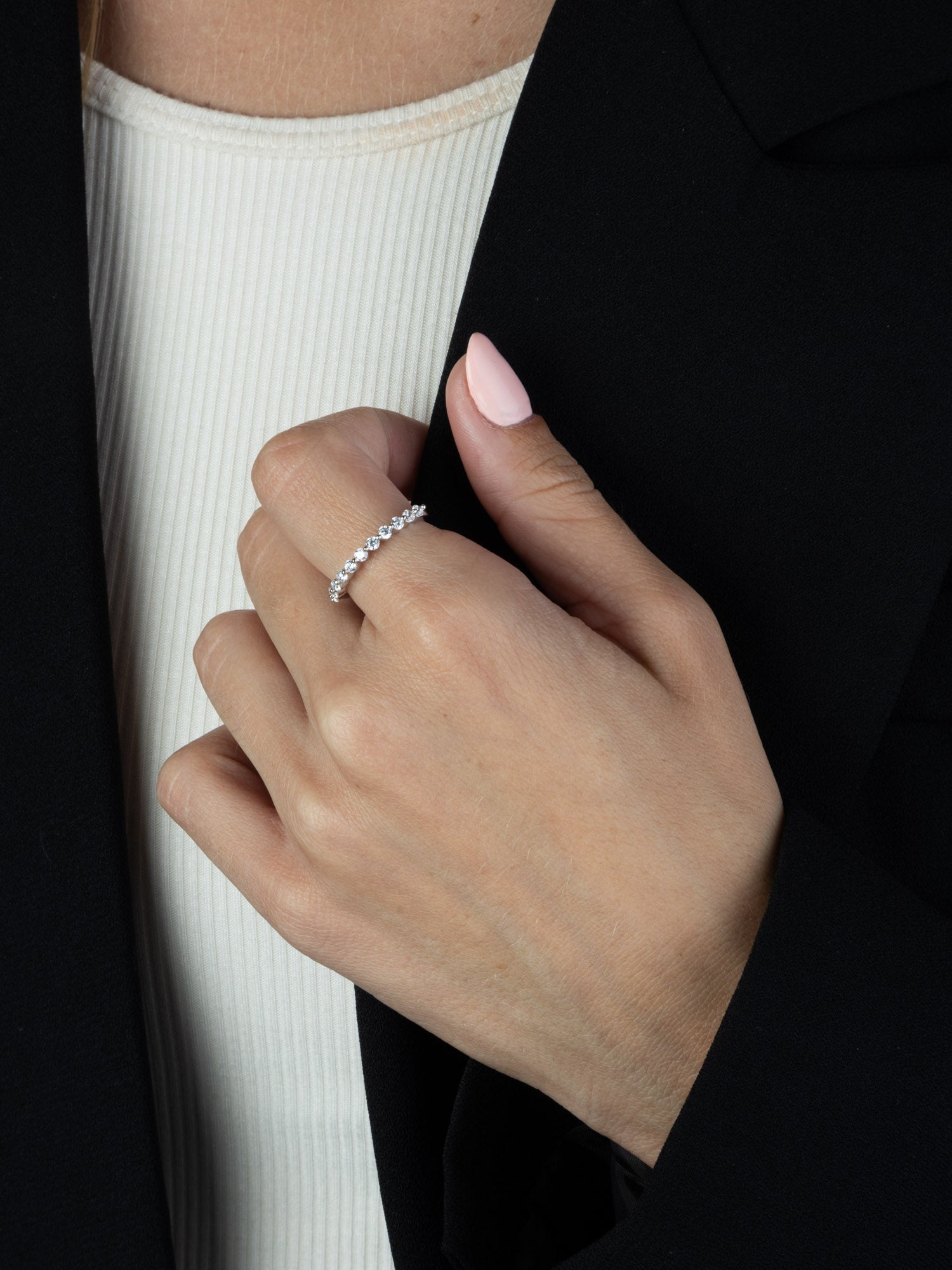 Anillo Delicado, Plata 925 bañada en rodio, Zirconia cúbica artificial