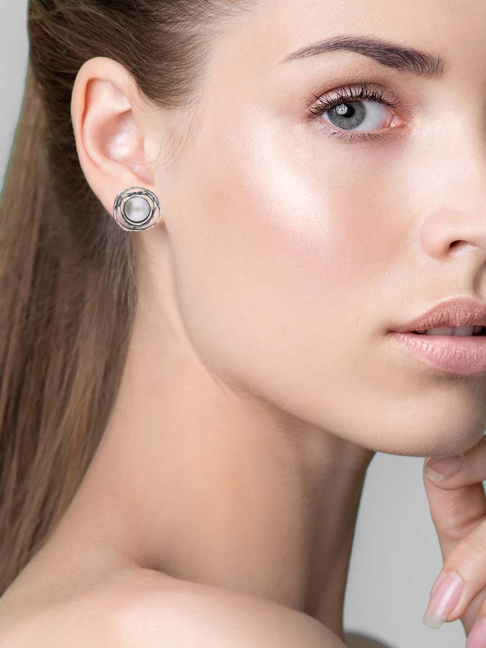 Tuerca, Plata 925 bañada en rodio, Zirconia cúbica artificial, Perla cultivada